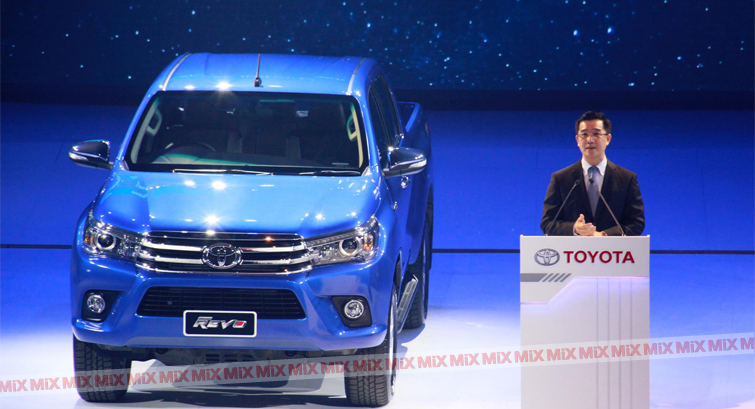 มร.เคียวอิจิ ทานาดะ เจ้าหน้าที่บริหาร บริษัท โตโยต้า มอเตอร์ คอร์ปอเรชั่น กรรมการผู้จัดการใหญ่ บริษัท โตโยต้ามอเตอร์ เอเชีย แปซิฟิค มาร์เก็ตติ้ง แอนด์เซลล์ และกรรมการผู้จัดการใหญ่ บริษัท โตโยต้า มอเตอร์ ประเทศไทย จำกัด และ มร.ฮิโรกิ นาคาจิมะ หัวหน้าวิศวกรอาวุโส เจ้าหน้าที่บริหาร บริษัท โตโยต้า มอเตอร์ คอร์ปอเรชั่น พร้อมด้วย คุณวุฒิกร สุริยะฉันทนานนท์ ผู้ช่วยกรรมการผู้จัดการใหญ่อาวุโส บริษัท โตโยต้า มอเตอร์ ประเทศไทย จำกัด ร่วมแถลงข่าวเปิดตัวรถกะบะรุ่นใหม่ล่าสุด “Hilux REVO ปฏิวัติทุกมิติ แห่งกระบะอนาคต” โดยเปิดตัวเป็นครั้งแรกของโลกที่ประเทศไทย ณ ไบเทคบางนา เมื่อวันที่ 21 พฤษภาคมที่ผ่านมา
