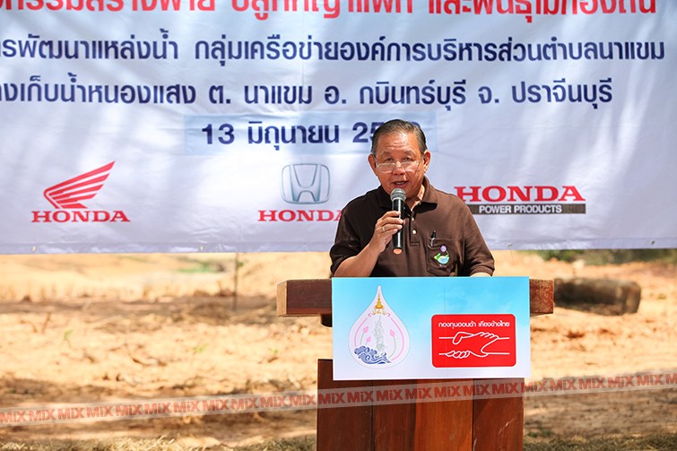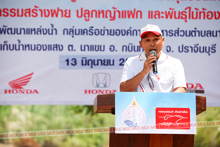 กองทุนฮอนด้าเคียงข้างไทย ภายใต้มูลนิธิฮอนด้าประเทศไทย ได้ประสานความร่วมมือกับมูลนิธิอุทกพัฒน์ ในพระบรมราชูปถัมภ์ สนับสนุนการดำเนินงานโครงการพัฒนาแหล่งน้ำ ตามแนวพระราชดำริ ในพื้นที่ลุ่มน้ำปราจีนบุรี เพื่อเตรียมความพร้อมและแก้ไขปัญหาภัยแล้งและน้ำหลากให้แก่ประชาชนในพื้นที่เพื่อประโยชน์ทางการเกษตรและการอุปโภคบริโภค โดยจัดกิจกรรมนำร่องในครั้งแรกเมื่อวันที่ 9 พฤษภาคม 2558 ร่วมกับชุมชนตำบลนาแขม สร้างฝายหิน ปลูกหญ้าแฝก และพันธุ์ไม้ท้องถิ่น ณ อ่างเก็บน้ำหนองแสง ตำบลนาแขม อำเภอกบินทร์บุรี จังหวัดปราจีนบุรี
