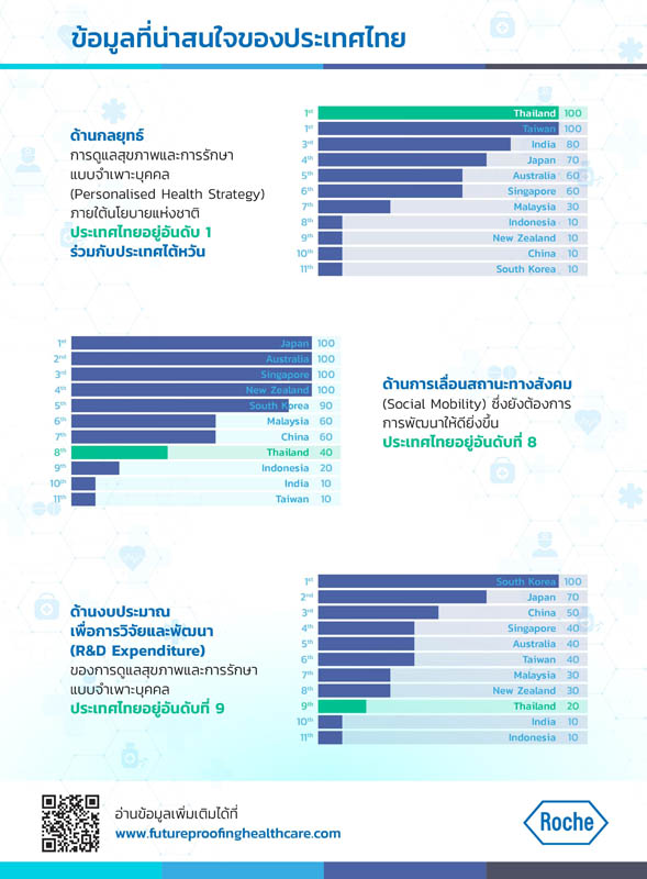ด้วยคำนึงถึงความสำคัญของการดูแลสุขภาพและการรักษาแบบจำเพาะบุคคล จึงเกิดการรวบรวมข้อมูลเพื่อจัดอันดับความพร้อมของประเทศในภูมิภาคเอเชียแปซิฟิกจำนวน 11 ประเทศ รวมถึงประเทศไทย เพื่อเร่งพัฒนาการรักษาแบบจำเพาะบุคคลให้กลายเป็นแนวทางพื้นฐานที่ประชาชนทุกคนสามารถเข้าถึงได้ โดยดัชนีประเมินความพร้อมการดูแลสุขภาพและการรักษาแบบจำเพาะบุคคล (Asia-Pacific Personalised Health Index) ยังสามารถใช้เป็นแนวทางประกอบการกำหนดนโยบายเพื่อกระตุ้นให้ภาครัฐและเอกชนนำไปต่อยอดให้เกิดขึ้นจริงในอนาคต