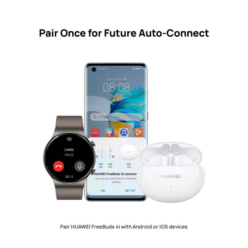 HUAWEI FreeBuds 4i การันตีเสียงเบสกระหึ่มด้วยไดนามิกไดร์เวอร์ขนาดใหญ่ 10 มิลลิเมตร แถมยังได้รับการปรับจูนให้สามารถประมวลเสียงเครื่องดนตรี จังหวะ และเสียงร้องให้เข้ากับความถี่ของเพลงป๊อปโดยเฉพาะทำให้มั่นใจได้ว่าสามารถยกระดับประสบการณ์การออกกำลังกายที่บ้านให้สนุกสนาน พร้อมดื่มด่ำกับเสียงเพลงคุณภาพเยี่ยมแถมยังเชื่อมต่อกับสมาร์ทโฟนได้ทุกระบบปฏิบัติการด้วยบลูทูธ 5.2 ไม่ว่าจะเป็น Android หรือ iOS แต่แน่นอนว่าเชื่อมต่อได้สะดวกและแม่นยำเป็นพิเศษกับสมาร์ทโฟนหรือแท็บเล็ตของหัวเว่ยที่ใช้ EMUI 10.0 ขึ้นไปเพียงเปิดฝาเคสชาร์จของ HUAWEI FreeBuds4i และกดปุ่มด้านข้าง สมาร์ทโฟนหรือแท็บเลตก็จะตรวจจับได้ และปรากฏจอ pop-up ให้ยืนยันการเชื่อมต่อโดยหลังการเชื่อมต่อครั้งแรกแล้ว ต่อไปหูฟังจะเชื่อมต่อกับสมาร์ทโฟนหรือแท็บเล็ตอัตโนมัติ หยิบปุ๊บสวมปั๊บ พร้อมให้ฟิตหุ่นกันแบบสนุกและสะดวกได้ทุกสถานการณ์