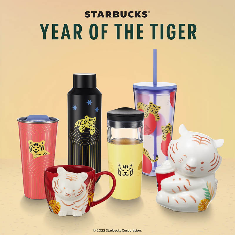 เพื่อต้อนรับปีนักษัตรใหม่ สตาร์บัคส์ ขอแนะนำ คอลเลคชั่นดริ๊งค์แวร์ที่เฉลิมฉลองปีขาลด้วยลวดลายเสือ และส้มแมนดาริน ที่เป็นสัญลักษณ์แห่งความสมบูรณ์ในโทนสีเหลือง ฟ้า แดงอมส้ม เหมาะแก่การสะสม หรือซื้อเป็นของขวัญปีใหม่และตรุษจีน โดยคอลเลคชั่นพิเศษนี้ จะเริ่มจำหน่ายตั้งแต่วันที่ 6 มกราคม 2565 เป็นต้นไป