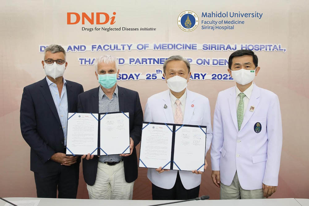คณะแพทยศาสตร์ศิริราชพยาบาล มหาวิทยาลัยมหิดล ลงนามในข้อตกลงความร่วมมือกับองค์กรด้านการวิจัยและพัฒนาเกี่ยวกับโรคที่ถูกละเลย (Drugs for Neglected Disease initiative (DNDi) หรือ ดีเอ็นดีไอ เพื่อการพัฒนาด้านการป้องกันและการรักษาที่สามารถเข้าถึงได้และมีประสิทธิภาพสำหรับโรคไข้เลือดออกเป็นระยะเวลาห้าปี