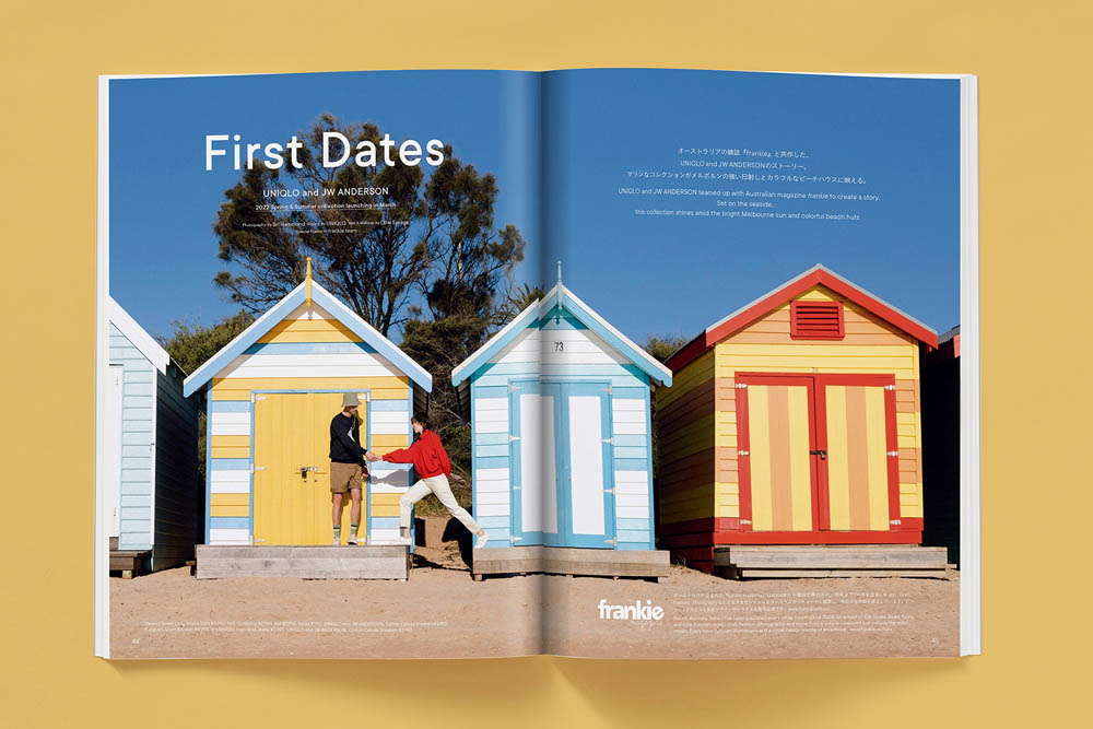 เรื่องราวแฟชั่นที่สร้างขึ้นร่วมกับ frankie magazine นิตยสารจากประเทศออสเตรเลีย ในคอลัมภ์นี้ประกอบไปด้วยภาพบ้านชายทะเลในเมืองเมลเบิร์น ซึ่งเป็นธีมของ UNIQLO and JW ANDERSON ประจำฤดูใบไม้ผลิและฤดูร้อนปี 2022 ที่จะเต็มไปด้วยกลิ่นอายของชายทะเล โดยดีไซน์เนอร์ โจนาธาน แอนเดอร์สันได้นำเสนอคอลเลคชันนี้กับโทนสีสันที่ดึงดูดสายตา โดยได้แรงบันดาลใจมาจากวัฒนธรรมที่โดดเด่นเป็นเอกลักษณ์ของเรืองยอร์ชและชายหาด