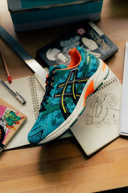 สำหรับสนีกเกอร์ GEL-1130™ สุดคลาสสิค มาพร้อมกับลายพรางที่คุณเคนจิ ไช (Kenji Chai) ศิลปินผู้ออกแบบสนีกเกอร์คู่นี้ให้มี “Chaigo” ในสีสันตามสไตล์ของเขา โดยคุณเคนจิได้ดีไซน์“Chaigo” คาแรคเตอร์สุนัขที่แสดงถึงความเป็นตัวตนของเขา (Chaigo มาจากภาษาจีนแมนดารินที่มีความหมายว่า “สุนัขจรจัด”) เพื่อเก็บเกี่ยวเรื่องราวของเขาเองเมื่ออยู่บนท้องถนนและคอยส่งพลังบวกให้กับผู้คนรายล้อม ด้วยความมุ่งมั่นที่จะสร้างความสัมพันธ์อันดีกับผู้คนผ่านงานศิลปะ เขาหวังว่าจะสามารถเป็นแรงบันดาลใจให้กับผู้อื่นในการไม่ย่อท้อและยอมแพ้ต่อการทำตามความฝันของทุกคน