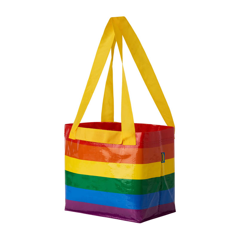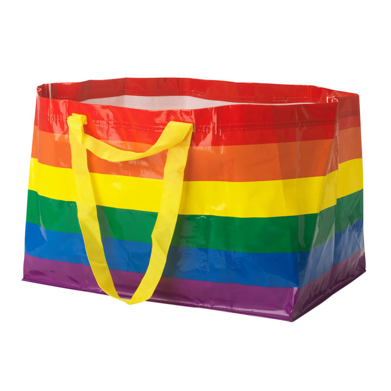 ถุงหิ้วสีรุ้ง รุ่น STORSTOMMA/สตอร์สต็อมม่า มี 2 ขนาดคือ 27x18x27 ซม. ราคา 59 บาท และ 55x37x35 ซม. ราคา 99 บาท เริ่มจำหน่ายที่สโตร์อิเกียและทางออนไลน์ ตั้งแต่วันที่ 17 พฤษภาคมเป็นต้นไป โดยถุงหิ้วนี้ได้รับแรงบันดาลใจจากธงสีรุ้งของกิลเบิร์ต เบเกอร์ นักเคลื่อนไหวเพื่อสิทธิความเท่าเทียม รุ้งแต่ละสีมีความหมายดังนี้ สีแดงคือชีวิต, สีส้มคือการรักษา, สีเหลืองคือดวงอาทิตย์, สีเขียวคือธรรมชาติ, สีครามคือความสงบ และสีม่วงคือจิตวิญญาณ