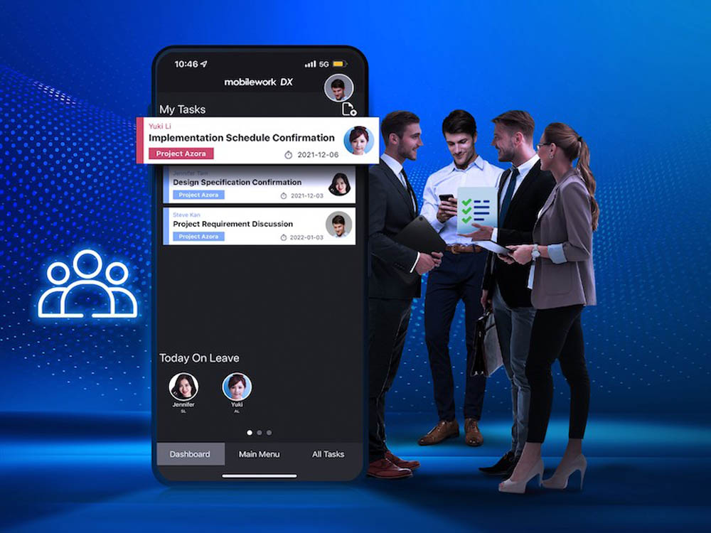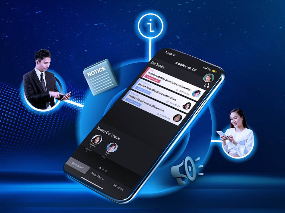 MobileWork DX ผสานฟีเจอร์ต่าง ๆ ที่ติดตั้งมาพร้อมใช้งาน เพื่ออำนวยความสะดวกผ่านการทำงานแบบอัตโตมัติ รวมถึงการแบ่งปันไฟล์เอกสารและการเข้าถึงข้อมูลได้อย่างมีประสิทธิภาพจากศูนย์กลางการทำงานกลางแห่งเดียว