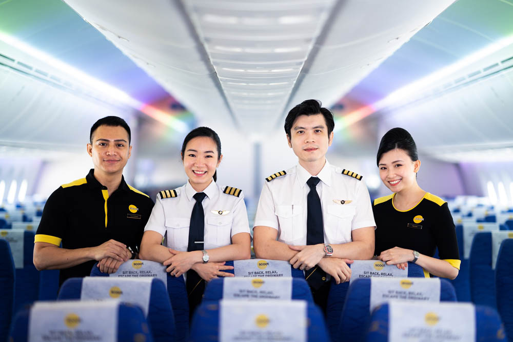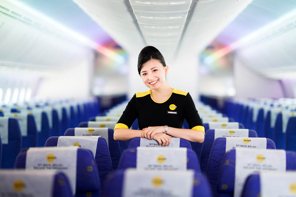 - เครื่องบินลำตัวกว้างโบอิ้ง 787 Dreamliner ให้บริการในชั้นประหยัด พร้อมตัวเลือกที่นั่งแบบมาตรฐานแถวหน้าด้วยพื้นที่เหยียดขายาวสุด (Stretch) ชั้น Scoot-in-silence ซึ่งไม่อนุญาตให้เด็กอายุต่ำกว่า 12 ปีใช้บริการในบริเวณนี้ ทำให้คุณสามารถเต็มอิ่มกับการเดินทางที่สงบยิ่งขึ้น และ ScootPlus ชั้นประหยัดแบบพรีเมียม มาพร้อมที่นั่งที่กว้างขวาง พร้อมอาหารและเครื่องดื่มแบบครบครันในแพคเกจ