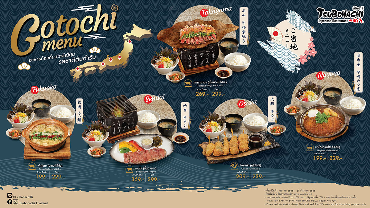 ร้านอาหารญี่ปุ่น “สึโบฮาจิ” ขอแนะนำ “Gotochi Menu” นำอาหารท้องถิ่นต้นตำรับจาก 5 เมืองดังประเทศญี่ปุ่นมาให้ลิ้มลองตั้งแต่ 1 ตุลาคม – 31 ธันวาคม ศกนี้