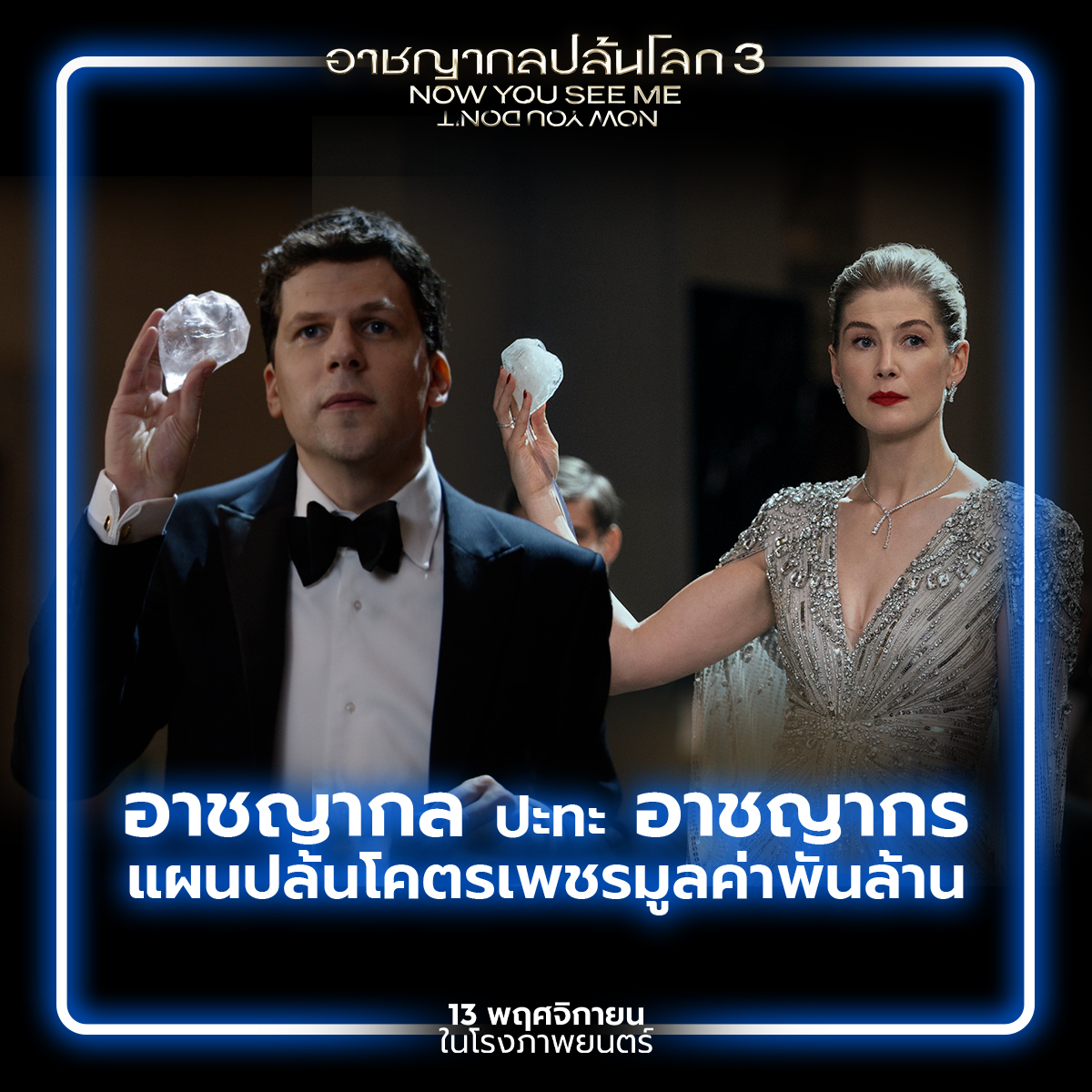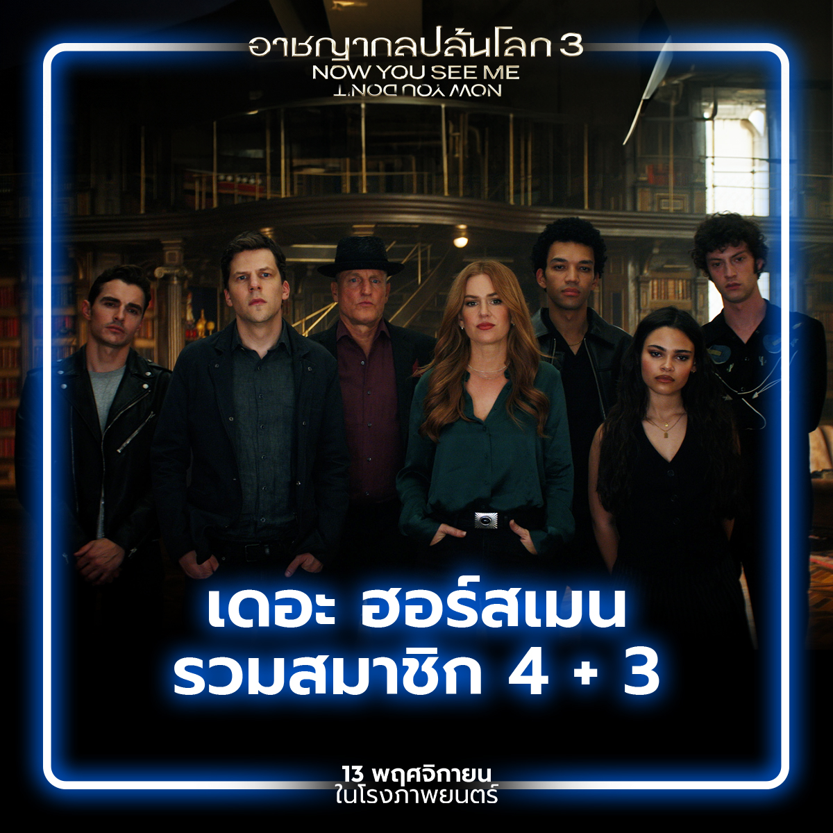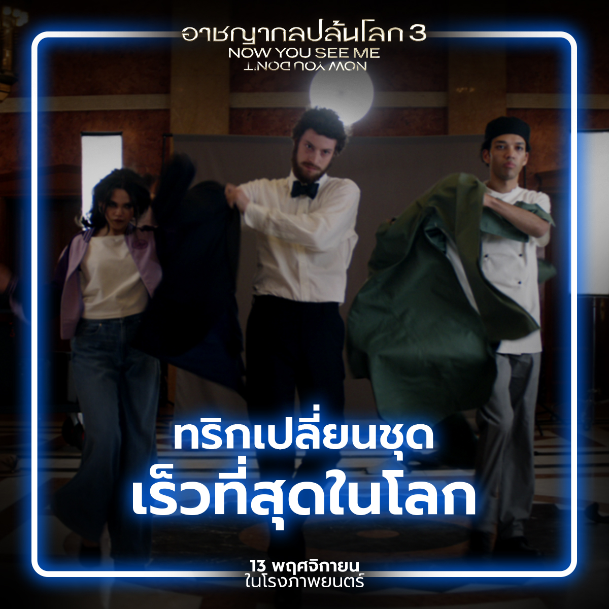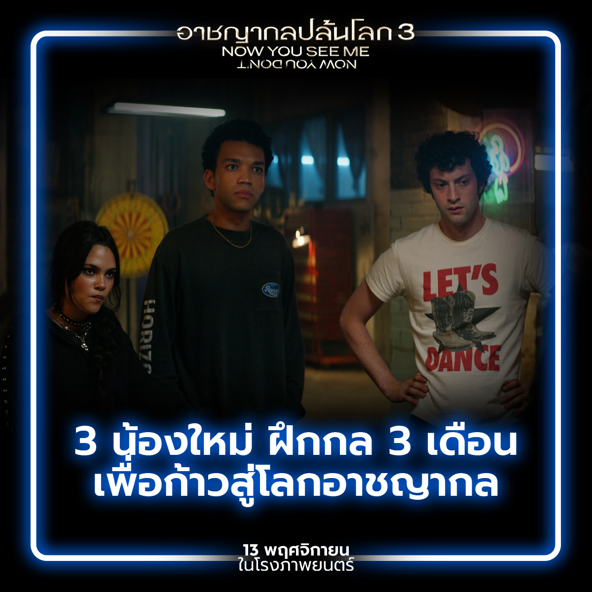 “จตุรอาชา” กลับมาแล้ว พร้อมแท็กทีม “นักมายากลรุ่นใหม่” ที่จะมาแสดงกลสุดล้ำ หักมุมเกินคาดเดา และใช้เวทมนตร์แบบเรียลไทม์อย่างที่ไม่เคยปรากฏในโลกภาพยนตร์มาก่อน กับ “ภารกิจโจรกรรม” ครั้งใหญ่ที่สุดในประวัติศาสตร์ เพื่อเอาคืน “เหล่าวายร้าย” อย่างสาสมใน “Now You See Me: Now You Don’t อาชญากลปล้นโลก 3” มันส์ก่อนอเมริกา 13 พฤศจิกายนนี้ ในโรงภาพยนตร์