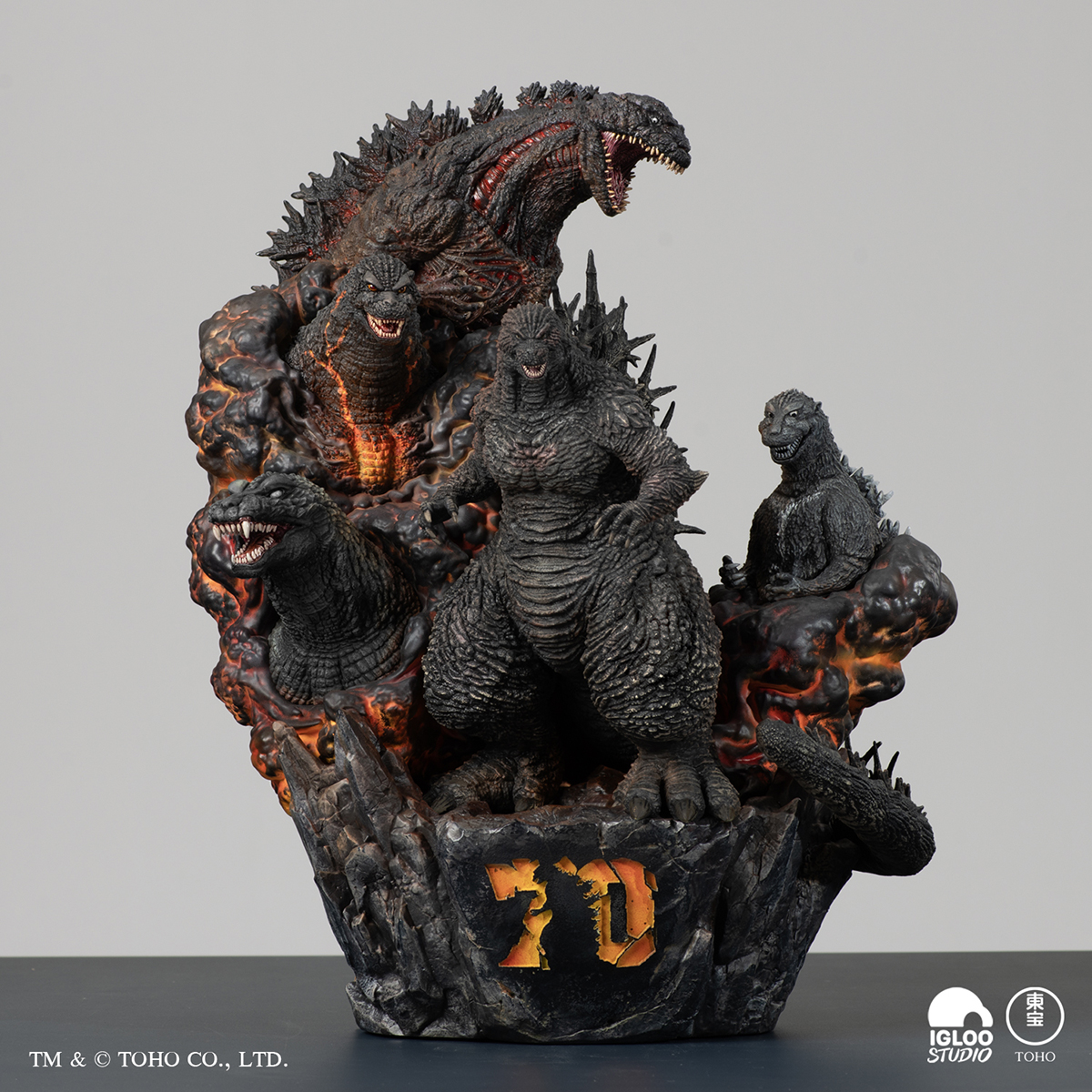 ผลงาน “Godzilla’s 70th Anniversary: Five Legacies” ของสะสมที่ถูกออกแบบโดยทีมงานของ IGLOO STUDIO มีการนำ Godzilla ทั้งหมด 5 ตัวที่มาจากภาพยนตร์ในปี 1954, 1995, 2001, 2016 และ 2023 มารวมกันในผลงานชิ้นเดียวกันเป็นครั้งแรก และยังมีการจัดวางท่าทางให้ดูมีความเคลื่อนไหว ปรับขนาดของ Godzilla ทั้ง 5 ตัวให้ดูเข้ากันและเป็นรูปตัวอักษร “G” ที่มาจากคำว่า Godzilla มีให้เลือกทั้ง Full Color ราคา 38,000 บาท และ Bronze Color 26,000 บาท โดยเริ่มวางจำหน่ายแล้วตั้งแต่วันนี้ที่ igloostudio.com/store