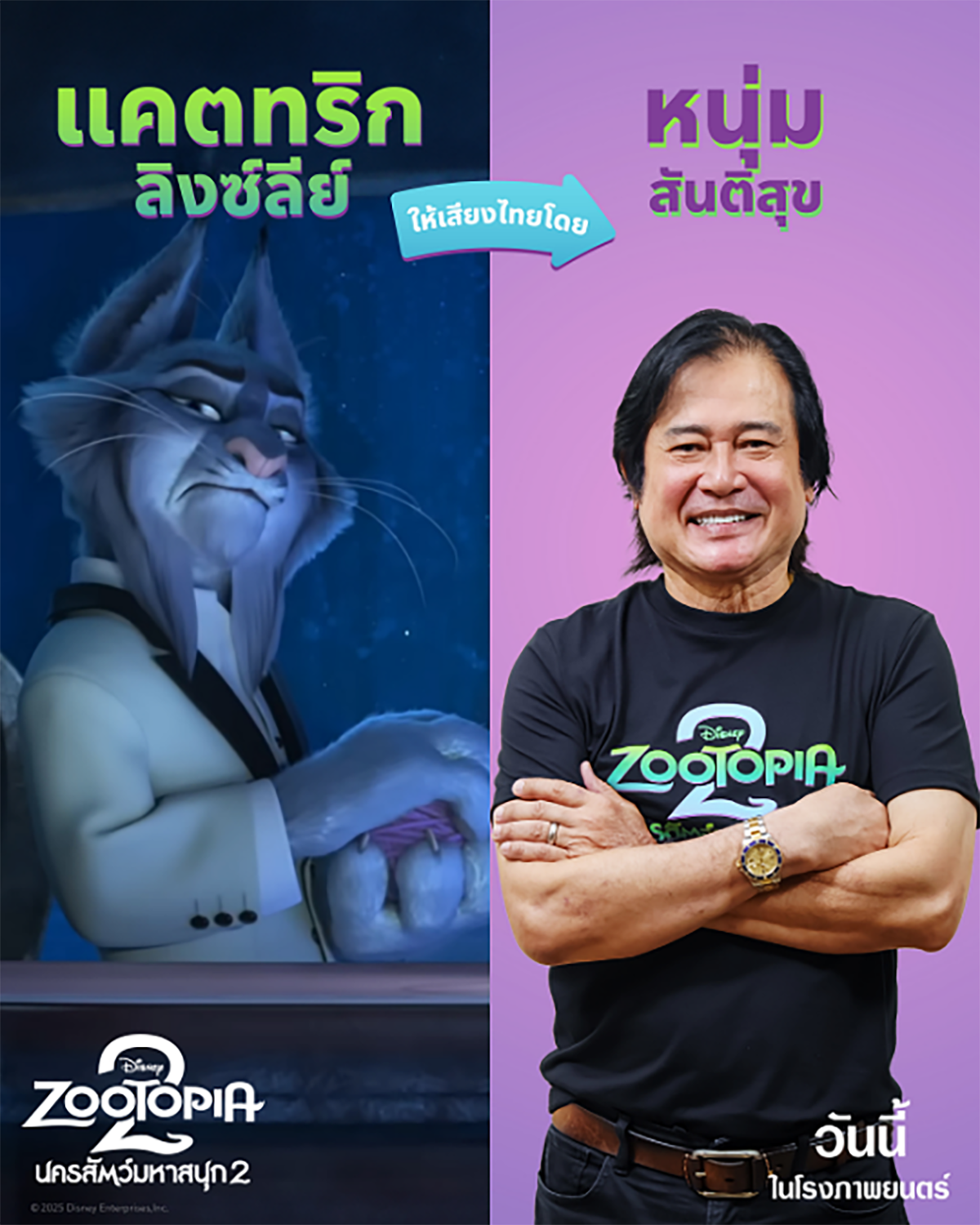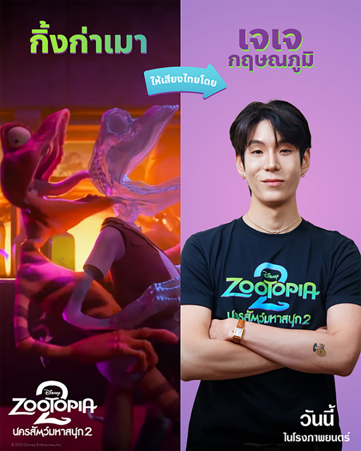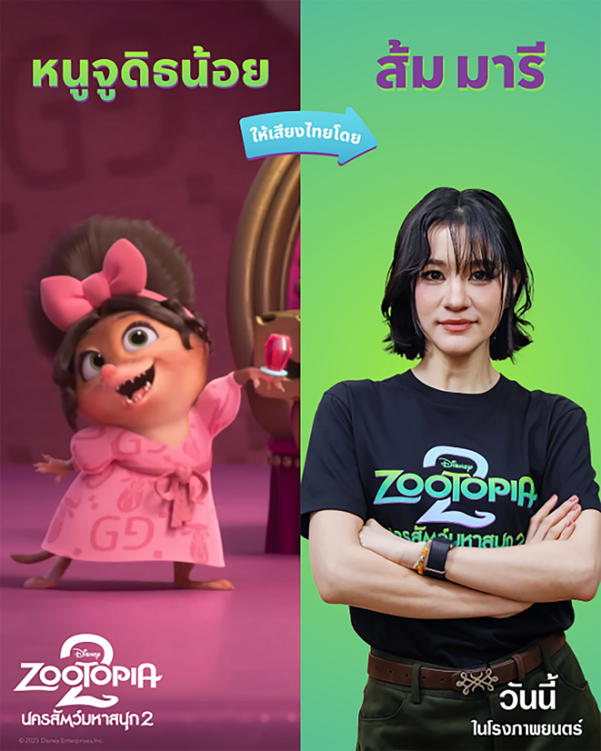 หลังจากปล่อยให้แฟน ๆ ลุ้นและเดากันไปก่อนหน้านี้ ในที่สุดก็ถึงเวลาคลายสงสัย เมื่อ “Disney’s Zootopia 2 นครสัตว์มหาสนุก 2” ออกมาเฉลยแล้วว่า 7 ศิลปินนักแสดงที่มาร่วมเป็นนักพากย์คนพิเศษ ทั้ง เจเจ กฤษณภูมิ พิบูลสงคราม, ส้ม-มารี เออเจนี เลอเลย์, ธามไท แพลงศิลป์, หญิง-รฐา โพธิ์งาม, แก้ม-วิชญาณี เปียกลิ่น, โดม-จารุวัฒน์ เชี่ยวอร่าม และ หนุ่ม-สันติสุข พรหมศิริ แต่ละคนให้เสียงไทยเป็นตัวละครไหนในเรื่องกันบ้าง งานนี้บอกเลยว่า เซอร์ไพรส์ยิ่งกว่าตอนเปิดตัวเสียอีก