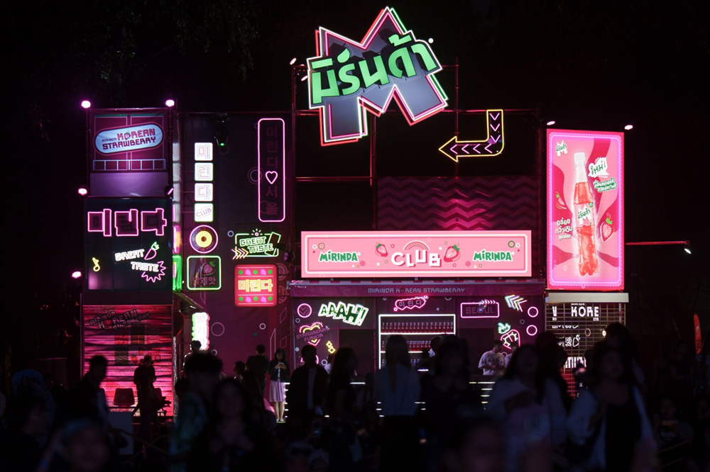 โซน มิรินด้า มาในคอนเซปต์ Korean Night Life เติมสีสันและความสดใสให้ผู้เข้าร่วมงานเหมือนได้สัมผัสบรรยากาศยามค่ำคืนที่เกาหลี ไฮไลต์ของโซน คือ มิรินด้า สตรอเบอร์รี สไตล์เกาหลี สูตรใหม่ ที่หอมหวาน อร่อยสดชื่นแบบเต็มรสชาติ ภายในโซนยังคึกคักด้วย “มิรินด้า บาร์” (Mirinda Bar) ที่เสิร์ฟความสดชื่นด้วยเมนูมิกซ์โซโลจี้ (Mixology) และ ห้ามพลาด บิงซู สองรสชาติอย่าง สตรอเบอร์รี สไตล์เกาหลี และ บลูเบอร์รี แสบส้ม รสเปรี้ยว หวาน ซ่า ผสมผสานกลิ่นบลูเบอร์รีและส้มอย่างลงตัว นอกจากนี้ยังมีโชว์ K-Pop Dance สุดพิเศษ และเกมให้ร่วมสนุกพร้อมลุ้นรับของรางวัลท่ามกลางบรรยากาศเกาหลีสุดมันส์ ที่ทั้งสดใส ฟีลกู๊ด พร้อมเติมเต็มความสนุกทุกโมเมนต์ตลอดทั้งงาน