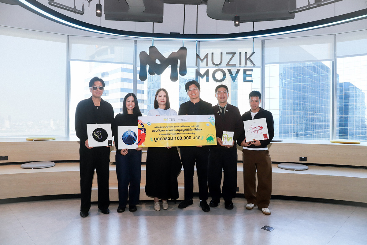 Muzik Move ผู้นำด้าน Music & Entertainment สรุปความสำเร็จของโปรเจกต์พิเศษ “Muzik Move Your Feeling” ที่ผสานดนตรี แฟชั่น และสิ่งแวดล้อมเข้าด้วยกัน โดยได้ร่วมกับแบรนด์สตรีทแคชวลแวร์ Smileyhound ส่งมอบเงินพร้อมของสนับสนุนให้แก่ มูลนิธิโลกสีเขียว รวมมูลค่า 100,000 บาท