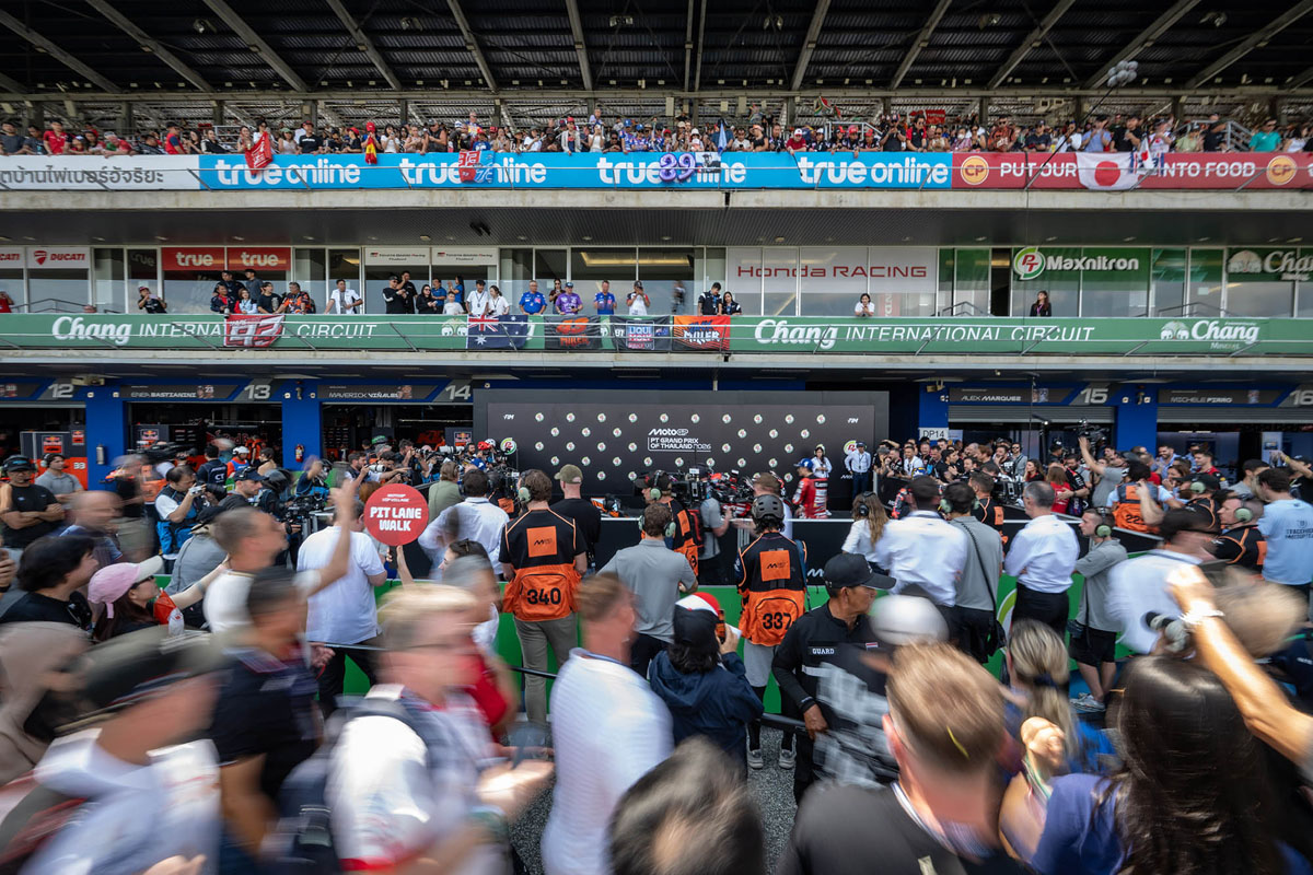 การแข่งขันรถจักรยานยนต์ทางเรียบชิงแชมป์โลก “โมโตจีพี” ประเดิมสนามแรกของฤดูกาล 2026 ภายใต้ชื่อรายการ “PT Grand Prix of Thailand 2026” ที่ สนามช้าง อินเตอร์เนชั่นแนล เซอร์กิต จ.บุรีรัมย์ บรรยากาศเต็มไปด้วยความคึกคักอย่างมาก แฟนความเร็วทั้งชาวไทยและต่างชาติจากทั่วทุกมุมโลกต่างหลั่งไหลเข้าสู่สนามอย่างเนืองแน่น เพื่อร่วมเป็นส่วนหนึ่งของเทศกาลมอเตอร์สปอร์ตที่ยิ่งใหญ่ที่สุดในโลก ท่ามกลางความตื่นตาตื่นใจกับกิจกรรมที่จัดเต็มครบเครื่องสำหรับคนรักความเร็วตลอด 3 วันเต็ม
