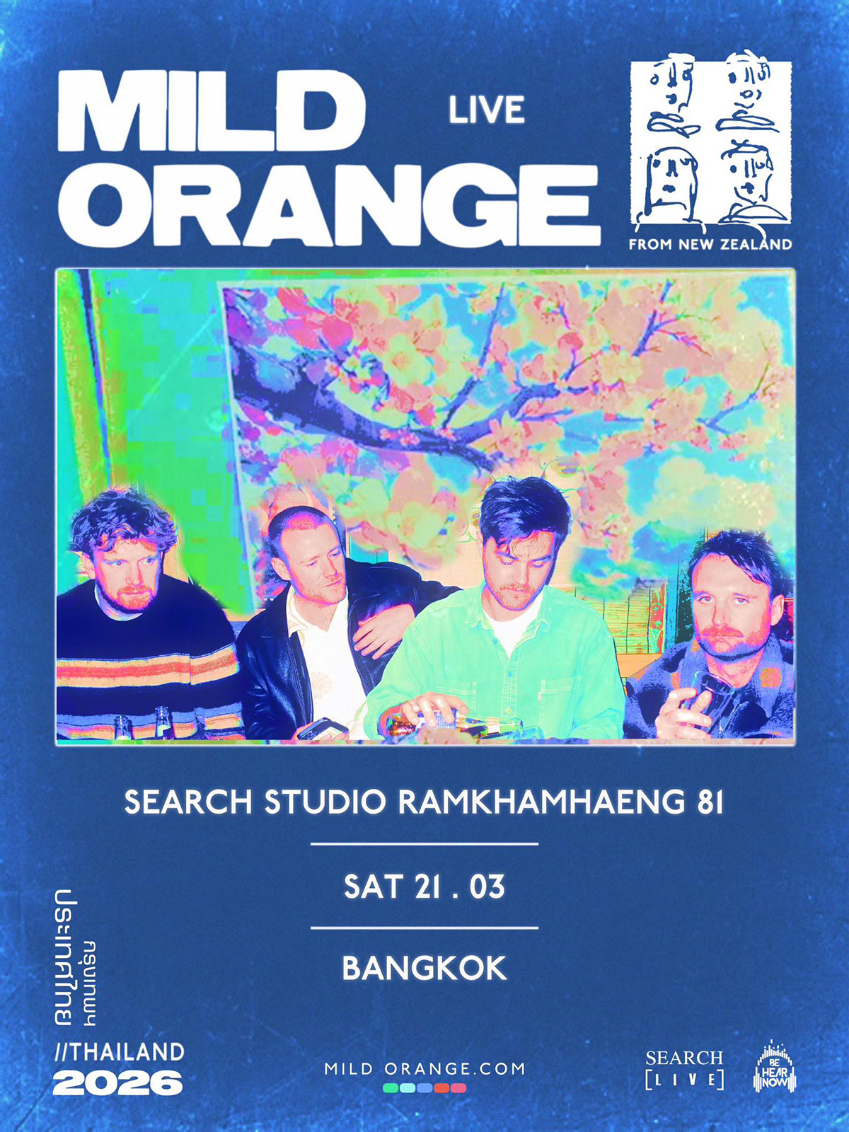 เตรียมล็อกคิวให้พร้อม แล้วปล่อยใจให้ลอยไปกับเมโลดี้สุดละมุน เพราะวงอินดี้ อัลเทอร์เนทีฟจากนิวซีแลนด์ Mild Orange กำลังจะบินลัดฟ้ามาสร้างค่ำคืนสุดพิเศษในประเทศไทยอย่างเป็นทางการ กับการแสดงสดเต็มรูปแบบครั้งแรกในไทย ในวันเสาร์ที่ 21 มีนาคม 2026 ณ Search Studio รามคำแหง 81โดยโปรโมเตอร์มากฝีมือ Be Hear Now ร่วมกับ Search Entertainment