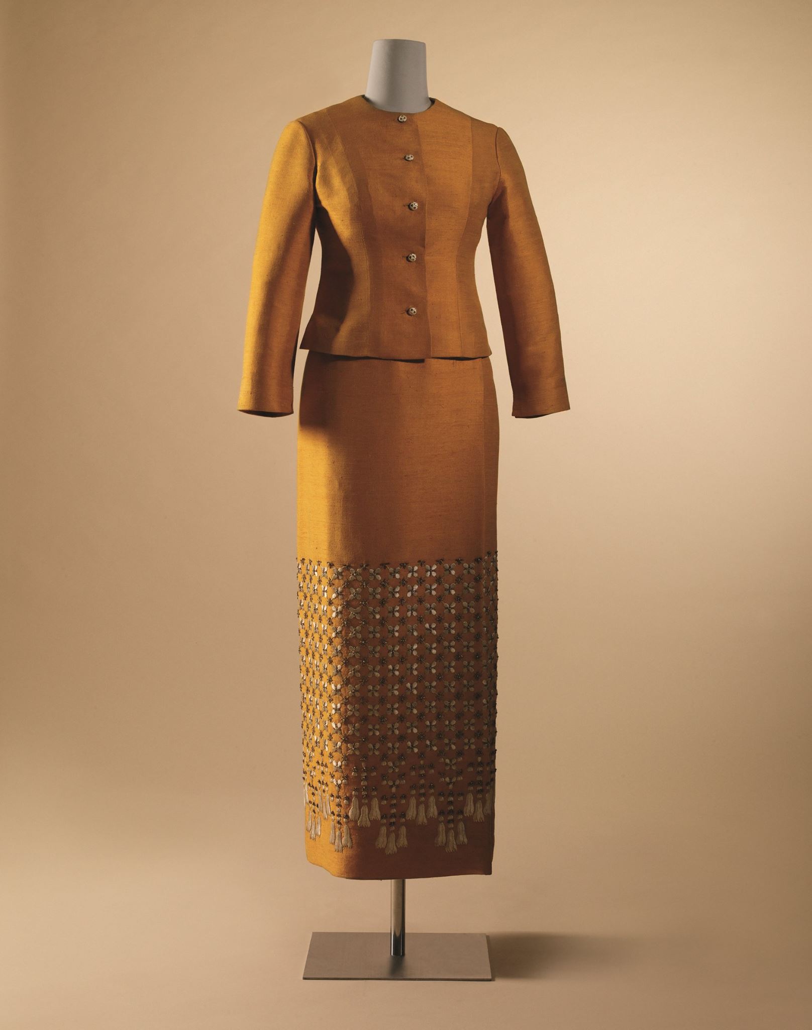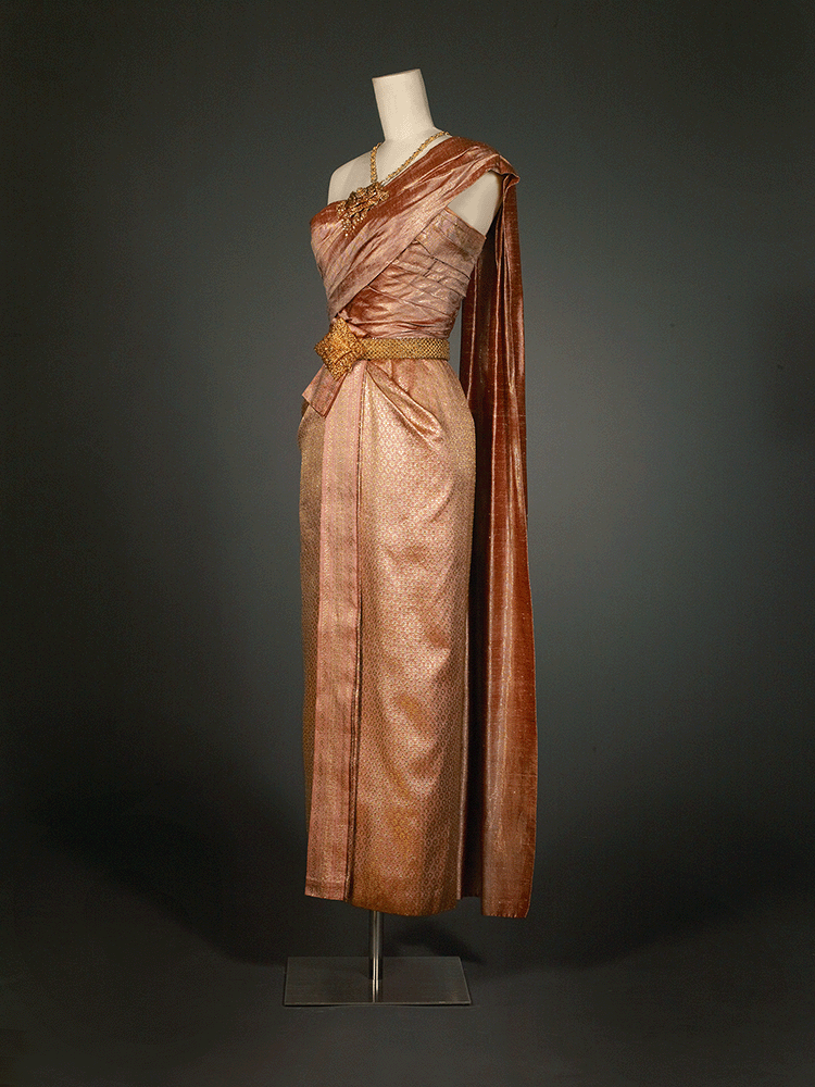 ย้อนไปยังสมัยยุคสงครามเย็น การสานสัมพันธ์ระหว่างประเทศเพื่อความมั่นคงของชาตินั้นสำคัญยิ่งกว่าสิ่งใด ซึ่งตัวแทนหลักของไทยบนเวทีโลกคงหนีไม่พ้นพระมหากษัตริย์และพระราชินีที่เสด็จฯ เยือนต่างประเทศอยู่หลายครั้งหลายครา และในทุก ๆ การเสด็จฯ ก็ย่อมต้องเตรียมการเกี่ยวกับฉลองพระองค์ไว้ล่วงหน้าเสมอเพื่อนัยทางการทูต