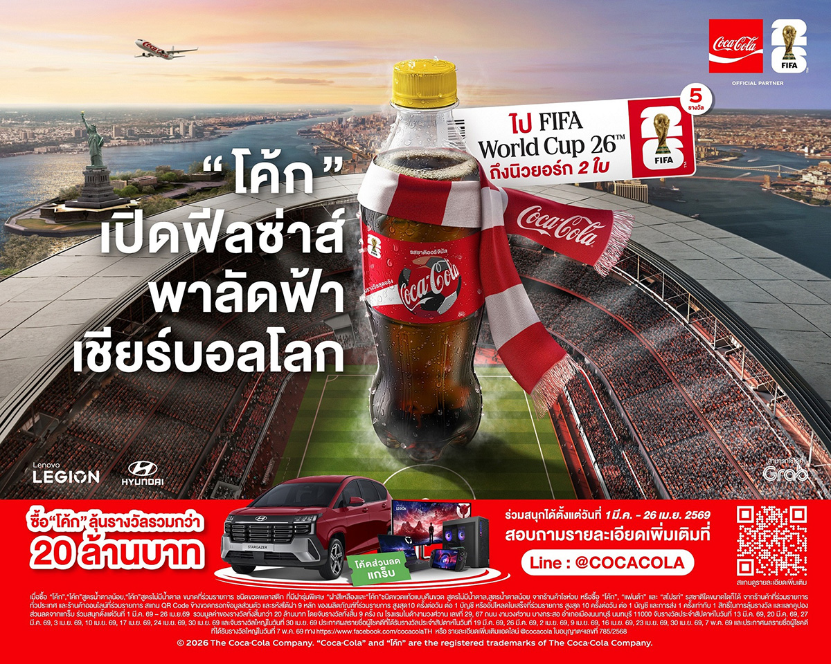 ซัมเมอร์นี้จะซ่าและตื่นเต้นกว่าที่เคย เมื่อ กลุ่มธุรกิจโคคา-โคล่า ในประเทศไทย อันประกอบไปด้วย บริษัท ไทยน้ำทิพย์ คอร์ปอเรชั่น จำกัด (มหาชน) บริษัท หาดทิพย์ จำกัด (มหาชน) และบริษัท โคคา-โคล่า (ประเทศไทย) จำกัด เสิร์ฟโปรโมชั่นสุดยิ่งใหญ่รับหน้าร้อนกับแคมเปญ “โค้ก” เปิดฟีลซ่าส์ พาลัดฟ้าเชียร์ FIFA World Cup™ พร้อมสานฝันแฟนบอลชาวไทยให้กลายเป็นจริง ด้วยการมอบประสบการณ์ระดับเวิลด์คลาสแบบ “ครั้งหนึ่งในชีวิต” พาผู้โชคดีบินลัดฟ้าไปชมการแข่งขันฟุตบอลโลก FIFA World Cup 2026™ ถึงมหานครนิวยอร์ก สหรัฐอเมริกา พร้อมจัดเต็มของรางวัล ทั้งส่วนลดรายวัน รางวัลประจำสัปดาห์ และรางวัลใหญ่ท้ายแคมเปญอย่างรถยนต์และอุปกรณ์เกมมิ่งระดับไฮเอนด์ รวมมูลค่ากว่า 20 ล้านบาท! ร่วมสนุกได้ตั้งแต่วันนี้จนถึงวันที่ 26 เมษายน 2569