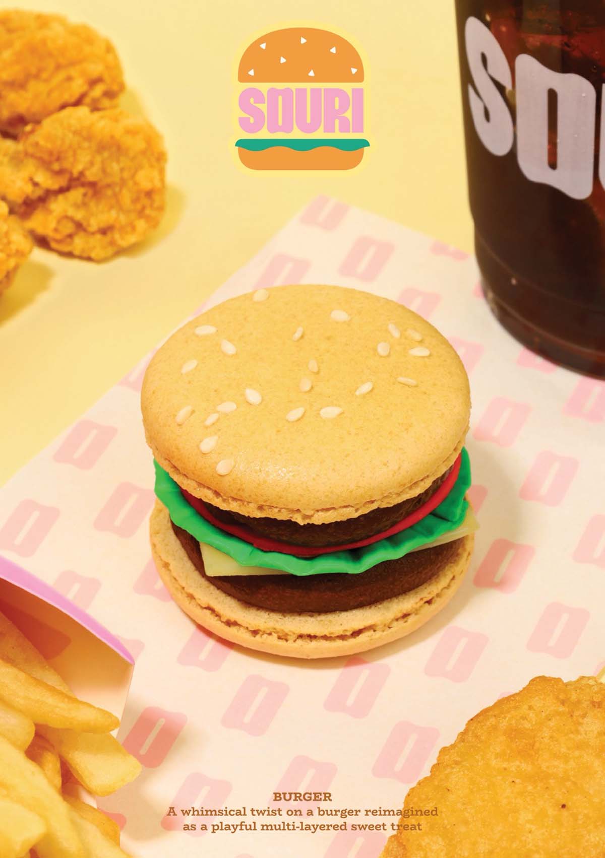 ครั้งนี้ SOURI ท้าทายทุกความคุ้นเคยของแฟนขนมหวาน ด้วยการตีความแฟตการองในมิติที่คาดไม่ถึง เปลี่ยนเมนูของหวานสุดไอคอนิกให้กลายเป็นศิลปะการลวงตาที่ทั้งน่ารักและน่ากิน ด้วยดีไซน์ที่ถอดรายละเอียดของแฮมเบอร์เกอร์มาอย่างพิถีพิถัน ตั้งแต่ส่วนของขนมปังด้านบนที่ให้สัมผัสนุ่มละมุน ไปจนถึงเลเยอร์ไส้ที่จัดวางอย่างมีมิติ เรียกได้ว่าทุกองค์ประกอบถูกสร้างสรรค์ขึ้นให้หลอกตาด้วยรูปลักษณ์ และดึงดูดใจด้วยรสชาติ เพื่อยกระดับประสบการณ์ขนมหวานให้กลายเป็นโมเมนต์ที่ทั้งสนุกและน่าจดจำ