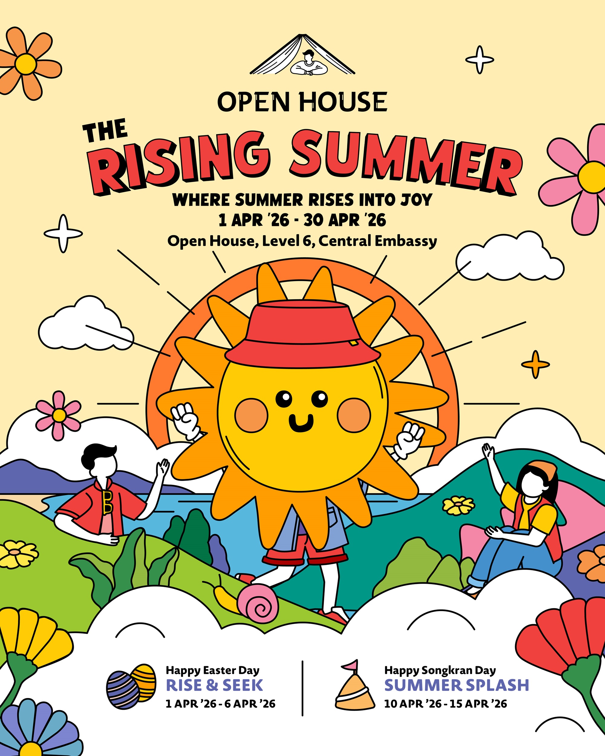 ต้อนรับฤดูร้อนที่เต็มไปด้วยสีสันที่ Open House ชั้น 6 กับ SUMMER SPLASH นิยามใหม่ของความชุ่มฉ่ำ (วันที่ 10 – 15 เมษายน 2569) สัมผัสเสน่ห์สงกรานต์ผ่านงานศิลปะร่วมสมัย กับ Modern Sand Pagoda สร้างเจดีย์ทรายรูปแบบใหม่ ตกแต่งธง สัญลักษณ์นำไปปักบนเจดีย์กระดาษยักษ์ Nature & Scent Workshop เปิดประสาทสัมผัสไปกับ Nature in Summer Art พิมพ์ลาย พฤกษศาสตร์จากวัสดุธรรมชาติ และ Summer Scented Candle ปรุงเทียนหอมจากกลิ่นอายไทยดั้งเดิมอย่าง น้ำอบ และดอกมะลิ