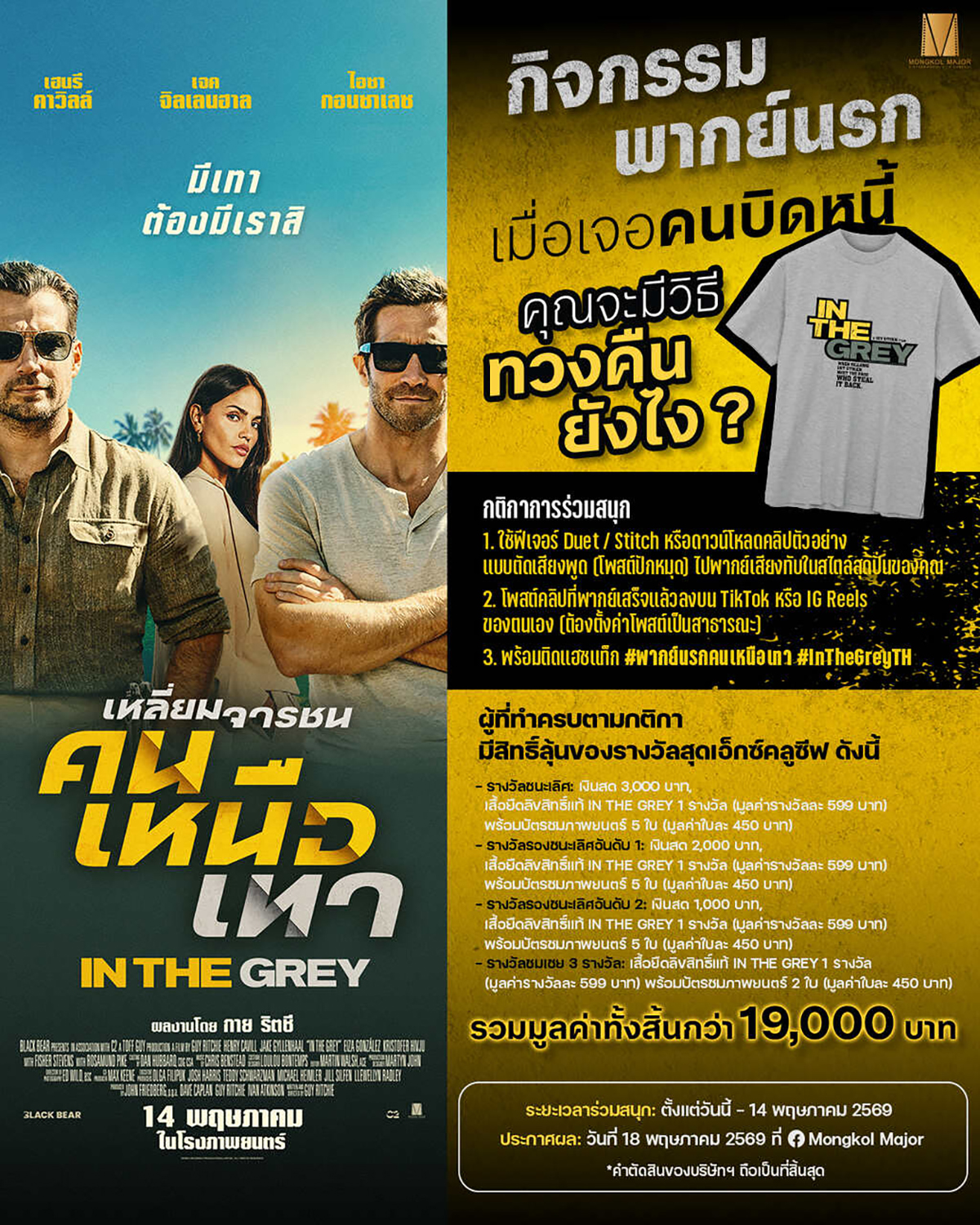 เตรียมตัวร่วมสนุกกิจกรรมสุดมันส์ก่อนไประห่ำเดือดกับ “In the Grey เหลี่ยมจารชน คนเหนือเทา” นำทัพโดยสองนักแสดงตัวตึงแห่งยุค “เจค จิลเลนฮาล” (Spider-Man: Far from Home, Brokeback Mountain) และ “เฮนรี คาวิลล์” (Man of Steel, The Ministry of Ungentlemanly Warfare) ร่วมด้วย “ไอซา กอนซาเลซ” (Baby Driver, Fast & Furious Presents: Hobbs & Shaw) และ “โรซามันด์ ไพก์” (Gone Girl, Now You See Me: Now You Don't) 14 พฤษภาคมนี้ ในโรงภาพยนตร์