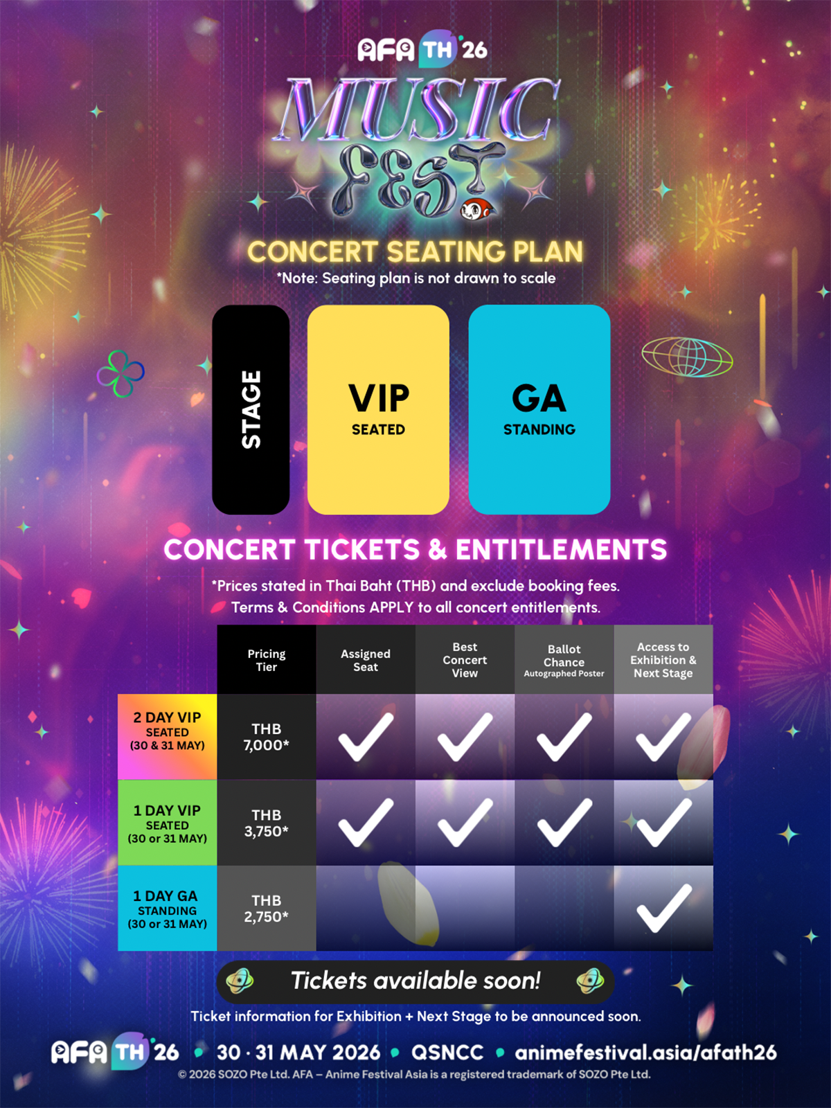 นอกจากนี้ยังมีจำหน่ายบัตรสำหรับเข้าชมส่วน Exhibition และ NEXT STAGE โดยเฉพาะ เพื่อเปิดโอกาสให้แฟน ๆ ทุกกลุ่มได้มาร่วมสนุกกัน! บัตร Early Bird มีจำนวนจำกัด และจะจำหน่ายจนกว่าสินค้าจะหมดเท่านั้น