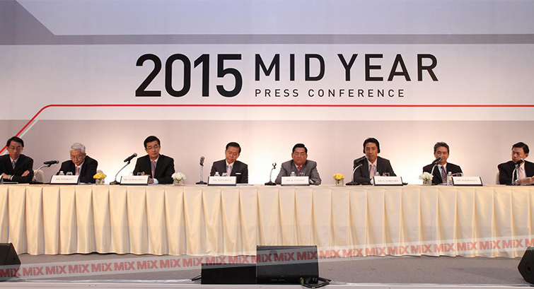 มร.เคียวอิจิ ทานาดะ เจ้าหน้าที่บริหาร บริษัท โตโยต้า มอเตอร์ คอร์ปอเรชั่น กรรมการผู้จัดการใหญ่ บริษัท โตโยต้า มอเตอร์ เอเชีย แปซิฟิค มาร์เก็ตติ้ง แอนด์เซลส์ กรรมการผู้จัดการใหญ่ บริษัท โตโยต้า มอเตอร์ เอเชีย แปซิฟิค เอ็นจิเนียริ่ง แอนด์ แมนูแฟคเจอริ่ง กรรมการผู้จัดการใหญ่ บริษัท โตโยต้า มอเตอร์ ประเทศไทย จำกัด แถลงสถิติการจำหน่ายรถยนต์ครึ่งแรกของปี 2558 มีปริมาณการขาย 369,109 คัน ลดลง 16.3% พร้อมปรับประมาณการตลาดรถยนต์ไทยปี 2558 อยู่ในระดับไม่เกิน 800,000 คัน เมื่อวันที่ 28 กรกฎาคม 2558 ณ ห้องบอลรูม โรงแรมโอกุระ กรุงเทพฯ