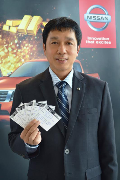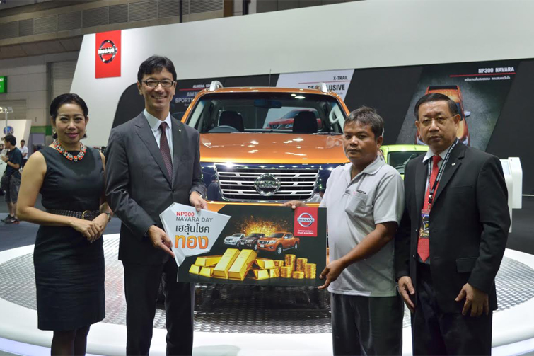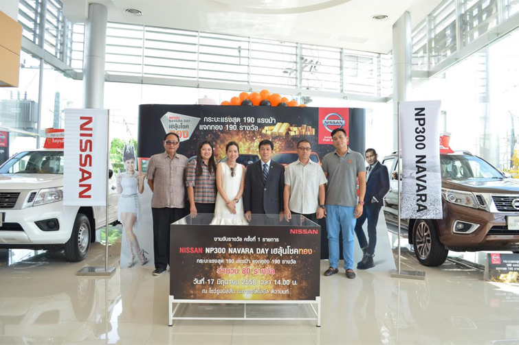ลูกค้านิสสัน เฮสุดและยิ้มกว้าง ได้รับโชคทอง จากแคมเปญแรง โดนใจ “Nissan NP300 Navara Day เฮลุ้นโชคทอง กระบะแรงสุด 190 แรงม้า แจกทอง 190 รางวัล” นายประพัฒน์ เชยชม รองกรรมการผู้จัดการใหญ่อาวุโสการตลาดและขาย บริษัท นิสสัน มอเตอร์ (ประเทไทย) จำกัด เปิดเผยว่า กิจกรรมส่งเสริมการขาย เพื่อตอบแทนลูกค้าที่ซื้อรถกระบะนิสสัน เอ็นพี 300 นาวารา “Nissan NP300 Navara Day เฮลุ้นโชคทอง กระบะแรงสุด 190 แรงม้า แจกทอง 190 รางวัล” ที่บริษัทฯจัดขึ้นระหว่างวันที่ 15 พฤษภาคม - 30 มิถุนายน 2558