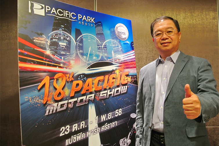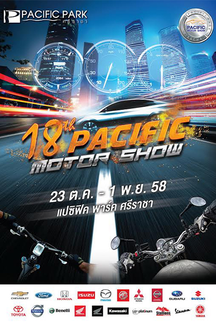 แปซิฟิค พาร์ค ศรีราชา ประกาศความพร้อมจัดสุดยอดมหกรรมงานแสดงยานยนต์แห่ง ภาคตะวันออก “แปซิฟิค มอเตอร์ โชว์ ครั้งที่ 18” อย่างยิ่งใหญ่ จัดระหว่าง 23 ตุลาคม - 1 พฤศจิกายนนี้ บนพื้นที่กว่า 4,500 ตารางเมตร ทุ่มกว่า 22 ล้านบาท อัดกิจกรรมบันเทิงแบบจัดเต็ม 22 ค่าย ยานยนต์ชั้นนำ ขานรับ ระดมทัพรถยนต์-มอเตอร์ไซค์รุ่นใหม่ล่าสุด พร้อมส่งโปรโมชั่นแรง ปลอดดอก-ไร้ดาวน์-น้อมรับทุกข้อเสนอของลูกค้า หวังกระตุ้นยอดขายรับไฮซีซั่น คาดกลุ่มผู้สนใจรถอเนกประสงค์ดัดแปลง (PPV) และปิกอัพคึกคัก รีบชิงตัดสินใจจับจองก่อนราคาขยับจากโครงสร้างภาษีสรรพสามิตใหม่ ที่มีผลบังคับใช้ต้นปี 2559 มั่นใจตลอด 10 วัน ที่จัดงานเงินสะพัดกว่า 600 ล้านบาท มีผู้ชมงานกว่า 500,000 คน