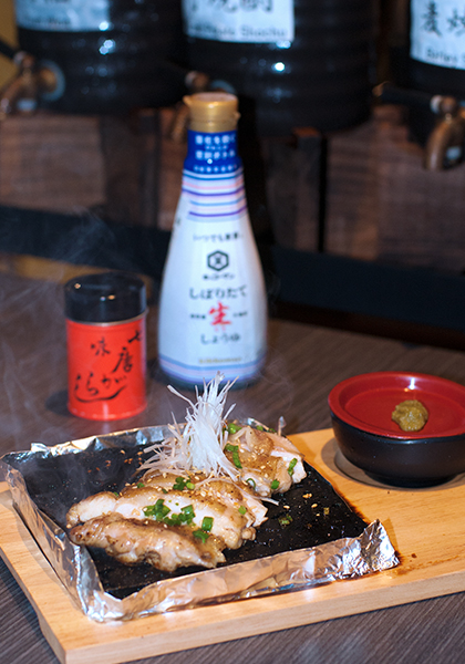 ถัดมาเป็นจานที่ห้า Yu Rin Chi - Chinese style Fried Chicken in Leek sauce ไก่ทอดยูริจิ หรือไก่ทอดซอสต้นกระเทียม ท็อปด้วยกระเทียมเจียว ต้อนหอมหั่นฝอย โรยปิดท้ายด้วยงา พร้อมราดซอสปิดท้าย ต่อด้วยจานที่หก Chicken Thigh grilled on the hot lava plate ไก่ทอดกระทะร้อน เสิร์ฟแบบร้อนรมควัน มีความหอมของควันเล็กน้อย ทานคู่กับซอสของทางร้าน