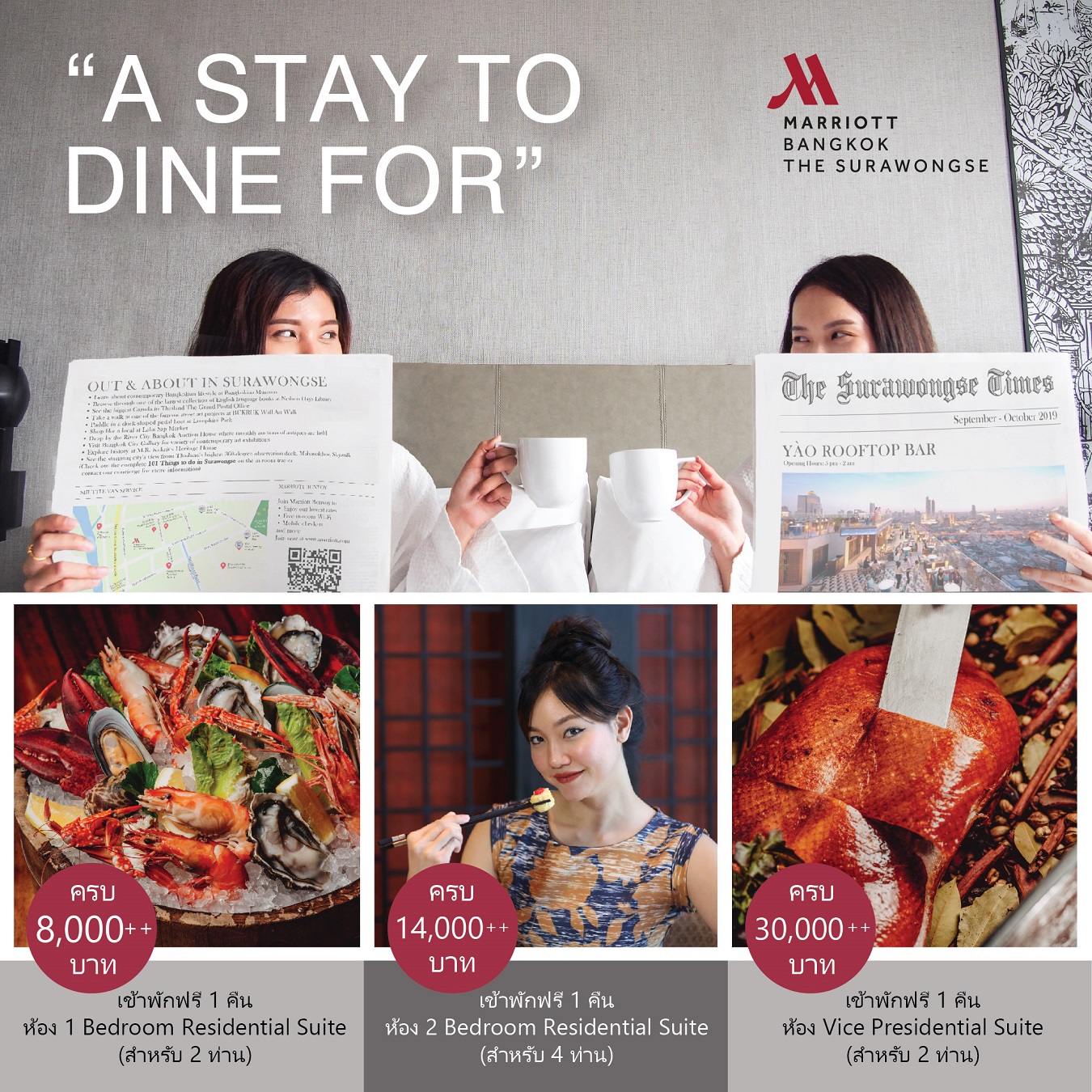 กินหรู อยู่สุรวงศ์ โปรสุดฟินกลับมาอีกครั้ง เฟี้ยวกว่าเดิมเพราะครั้งนี้แมริออท สุรวงศ์ให้ฟรีห้องสวีท