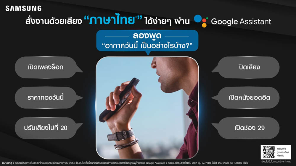 ง่ายขึ้นอีกขั้น! ซัมซุงทีวีให้ผู้ใช้สั่งการด้วยเสียงภาษาไทยผ่าน Google Assistant ยกระดับประสบการณ์การใช้งานทีวีให้สะดวกสบายยิ่งขึ้นพร้อมเปลี่ยนบ้านให้เป็นสมาร์ทโฮมด้วยเสียงของคุณ
