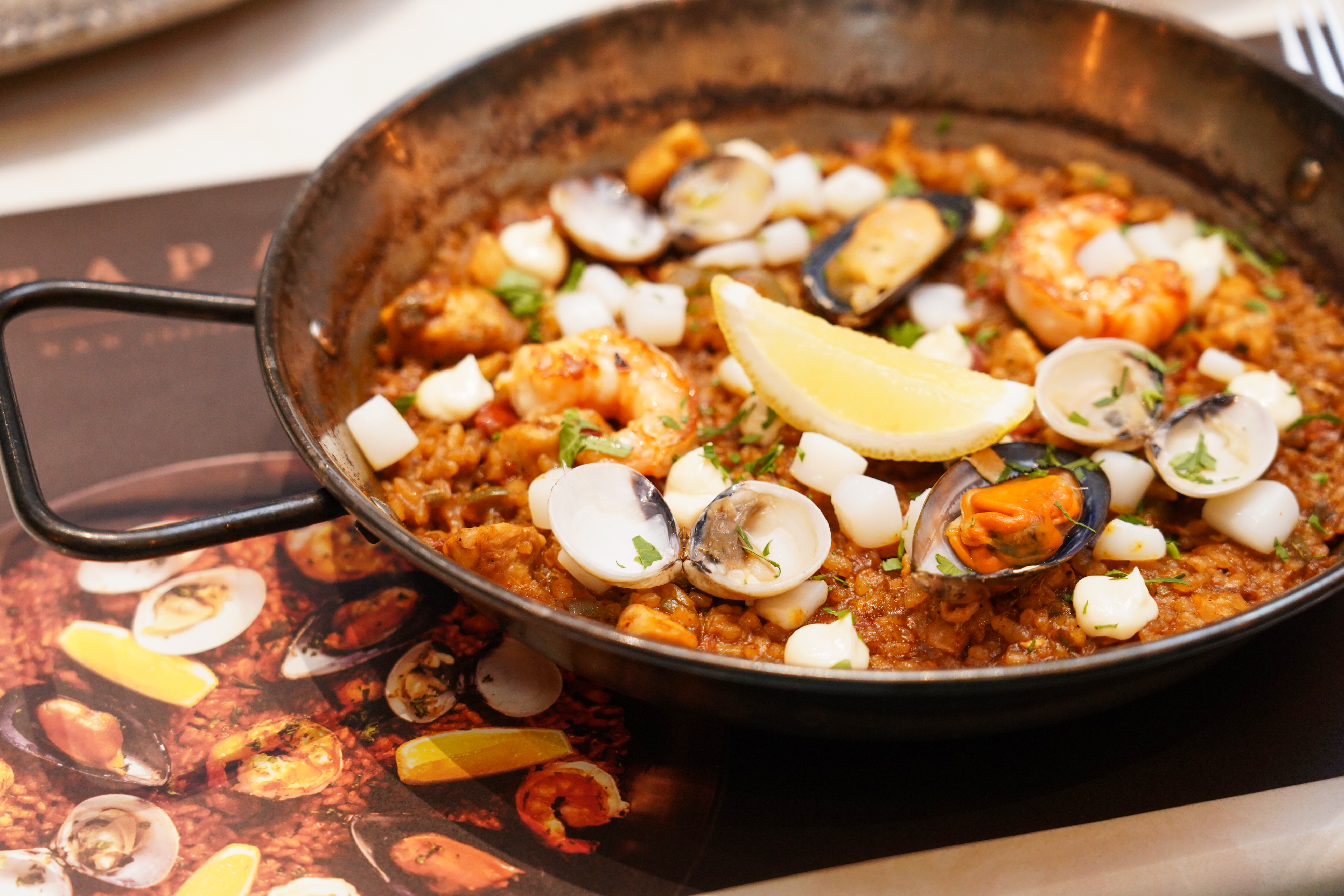 ชวนมาเที่ยวทิพย์ไกลต่อกันกับประเทศสเปนกับอาหารสเปนต้นตำรับจาก TAPAS by Nan Charcoal Grill ชั้น G โซน เดอะวีรันดา ใครได้ลองลิ้มชิมอาหารจานเชฟต้นตำรับที่มาปรุงให้ด้วยตัวเอง รับรองว่าจะรู้สึกเหมือนกินอยู่ที่สเปน โดยเฉพาะเมนู Paella ข้าวผัดสเปน ที่เสิร์ฟมาในกระทะร้อน เมนูนี้ถือเป็นอาหารประจำชาติของสเปนเลยก็ว่าได้ ข้ าวที่ Tapas ใช้เป็นข้าวสเปน ซึ่งเม็ดข้าวสั้นและอ้วนกว่าข้าวหอมมะลิของไทย เมนูนี้เชฟจะหุงข้าวกับน้ำสต็อกกุ้งเพื่อเพิ่มมิติให้รสชาติของข้าว ส่วนด้านบนมีหอย 3 ชนิด กุ้ง และไก่ รวมถึงซอสการ์ลิกมาโย ที่เชฟแนะนำให้ปาดซอสให้ทั่วและบีบเลม่อนก่อนกิน นอกจากนี้เมนูข้าวผัดสเปนของ Tapas ยังมีอีกหลายแบบทั้ง Tom-Yum Paella ที่ได้รสชาติต้มยำอันแสนเข้มข้น หรือใครเป็นมังสวิรัตก็มี Vegetarian Paella ที่ใช้ผักตามฤดูกาล ส่วนคนที่ไม่ชอบข้าวก็มีเมนู Paella in Noodle Style
