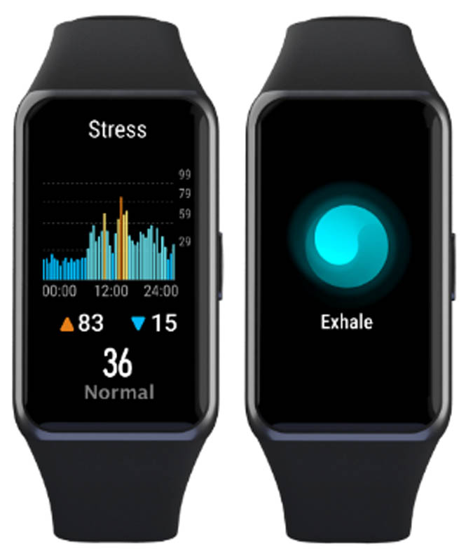 HUAWEI Band 6 ยังช่วยให้ผู้ใช้งานสามารถบริหารจัดการกับความเครียดได้ ด้วยเทคโนโลยี HUAWEI TruRelax™ ซึ่งพัฒนาโดยทีม HUAWEI Band 6 และสถาบันจิตวิทยาของสถาบันบัณฑิตวิทยาศาสตร์จีน (Institute of Psychology, Chinese Academy Sciences) คอยประเมินความเครียดของผู้ใช้โดยอิงจากอัตราการเต้นของหัวใจ นอกจากนี้เรายังสามารถฝึกการหายใจเข้าออกโดยละเอียดอย่างมีขั้นตอนได้ด้วยตนเองอีกด้วยโดยเลือกใช้งานผ่านแอปพลิเคชัน HUAWEI Health1