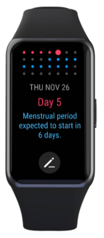 เรียกได้ว่าเป็นฟีเจอร์ที่สุภาพสตรีทุกคนปรารถนา คือการบันทึก แจ้งเตือน และประเมินรอบเดือนครั้งถัดไปของตัวเองได้ ซึ่งไม่ใช่เพียงแค่มีไว้เพื่อจะได้ไม่ลืมพกผ้าอนามัยติดตัว แต่ข้อมูลเหล่านี้ยังสามารถนำไปใช้ได้กับการวางแผนคุมอาหาร การวางแผนครอบครัว และการวางแผนออกกำลังกาย ซึ่งจะช่วยดูแลสุขภาพของสาวๆ ได้แบบครบทุกมิติ ไม่ใช่วางแผนไว้แล้วว่าสัปดาห์นี้จะวิ่งให้ได้ 5 วัน แต่ต้องมาเจอกับวันนั้นของเดือนแบบไม่ทันตั้งตัวจนอารมณ์เสีย โดยฟีเจอร์นี้ HUAWEI Band 6 มีมาให้ในรูปแบบของปฏิทินที่อ่านง่าย และสะดวกสบายเพราะดูได้โดยตรงบนจอขนาดใหญ่ของตัว