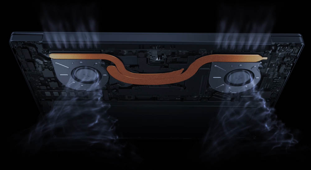 นอกจากนี้ เพื่อให้การประมวลผลเป็นไปอย่างทรงประสิทธิภาพสูงสุดHUAWEI MateBook 14 ยังพ่วงท่อระบายความร้อนแบบคู่และพัดลม HUAWEI Shark Fin2.0 ที่มีใบพัดแข็งแรง สามารถระบายความร้อนได้อย่างมีประสิทธิภาพโดยไม่ส่งเสียงดังรบกวนผู้อื่นอีกด้วย ช่วยให้ใช้งานแล็ปท็อปต่อเนื่องยาวนานโดยที่เครื่องไม่ร้อน