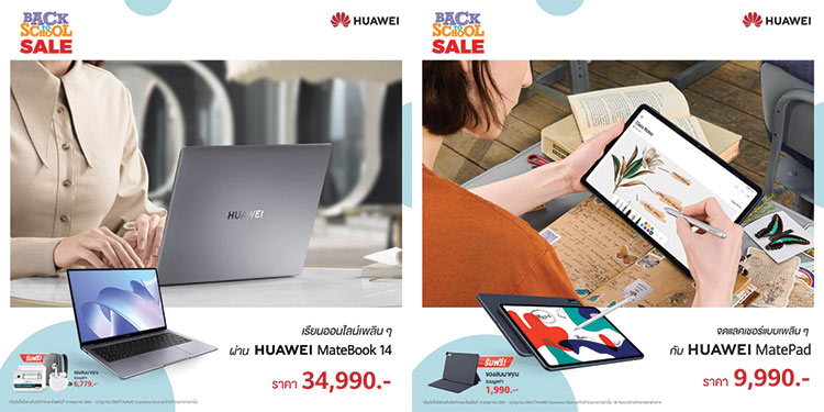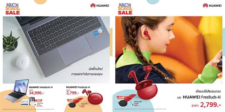 สำหรับใครที่สนใจผลิตภัณฑ์ที่กล่าวมาทั้งหมดข้างต้น ตอนนี้หัวเว่ยจัดโปรโมชัน Back To School ต้อนรับฤดูกาลเปิดเทอม ให้เรียนออนไลน์และ Work From Home กันได้แบบล้ำๆ โดยมอบของสมนาคุณสุดคุ้มมากมายที่จะยกระดับไลฟ์สไตล์ในยุค New Normal ให้สะดวกสบายยิ่งขึ้น สำหรับผู้ที่สั่งซื้อสินค้าผ่าน HUAWEI Online Store รวมถึงหน้าร้านHUAWEI Experience Store และร้านค้าที่ร่วมรายการทั่วประเทศตั้งแต่วันที่ 14 พฤษภาคม 2564 ถึง 13 มิถุนายน 2564 โดยสามารถอ่านข้อมูลเพิ่มเติมเกี่ยวกับโปรโมชัน Back To School ได้ที่นี่หรือติดตามข้อมูลเพิ่มเติมเกี่ยวกับผลิตภัณฑ์ของหัวเว่ยได้ที่นี่