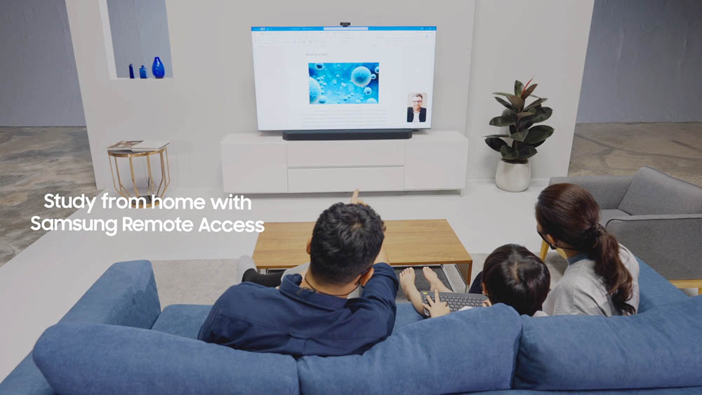 สำหรับใครที่ต้องทำงานหรือเรียนอยู่กับบ้านNeo QLED จะเป็นคอมพิวเตอร์ให้คุณ ด้วยฟีเจอร์ PC on TV ที่มาพร้อมกับ Microsoft 365 บนทีวี ให้คุณสร้างแก้ไขเอกสาร หรือเข้าถึงไฟล์บนเว็บเบราว์เซอร์ของทีวีได้ผ่านแอปพลิเคชัน Easy Connection นอกจากนี้ยังสามารถทำงานกับทีมได้เสมือนนั่งอยู่ด้วยกันในออฟฟิศ ด้วยวิดีโอคอลบนฟีเจอร์ Google Duoที่รองรับการคอลถึง 32 คอลในครั้งเดียวแบบไม่จำกัดแพลตฟอร์ม ผ่านเว็บแคมที่รองรับหรือจะโทรจากสมาร์ทโฟนที่เชื่อมต่อกับทีวีก็ได้