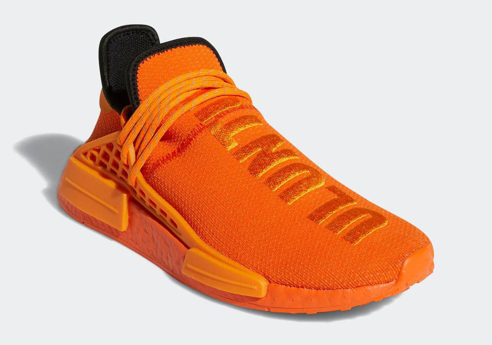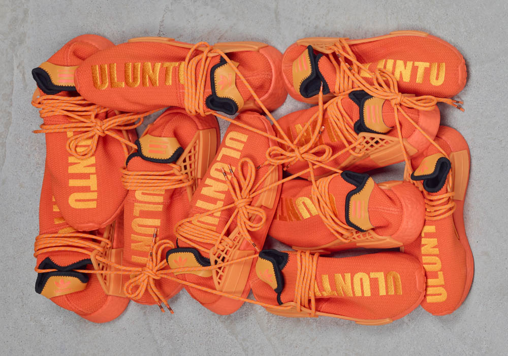 อาดิดาส ออริจินอลส์ จับมือ ฟาร์เรล วิลเลียมส์ ปล่อย PW HU NMD สีใหม่ล่าสุด สนีกเกอร์สีส้ม ที่มาพร้อมกับข้อความภาษาโคซาที่แปลว่า ‘Human Race’