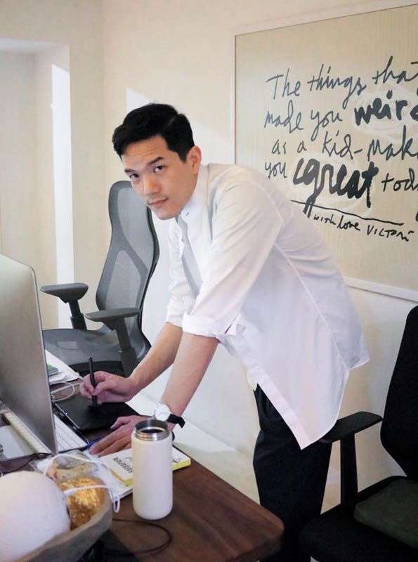 “วิกฤติโควิด-19 อาจทำให้ธุรกิจหยุดชะงัก แต่เราต้องไม่หยุด “ฝึกฝน” และ“เรียนรู้” นักออกแบบต้องไม่หยุดคิด ถึงแม้ว่าบางช่วงจะไม่มีคนจ้าง เราก็ต้องเป็นคนตั้งโจทย์เอง หาคำตอบเอง และทำขึ้นมาเอง ทำต่อเนื่องจนมีคนเห็นผลงานของเรา เท่านั้นยังไม่พอ ทุกวันนี้โลกไปเร็วมาก ถ้าเราจะแข่งในพื้นที่ที่มีคนเก่งเราต้องวิ่งและพัฒนาไปให้เร็วกว่าโลก เช่น เรารู้ว่า กบ กระโดดเก่ง เราก็ต้องกระโดดให้เก่ง