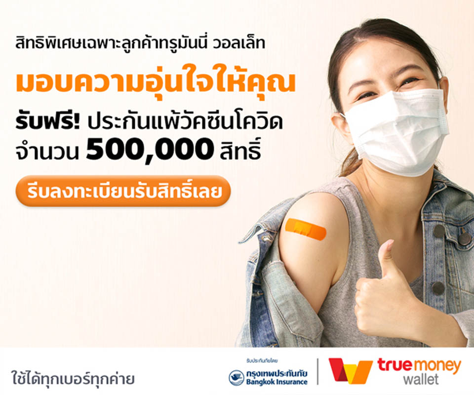 ทรูมันนี่ ห่วงใยผู้ใช้ จับมือ กรุงเทพประกันภัย มอบฟรี! ประกันแพ้วัคซีนโควิด-19 วงเงินคุ้มครองสูงสุด 100,000 บาท จำนวน 500,000 สิทธิ์*