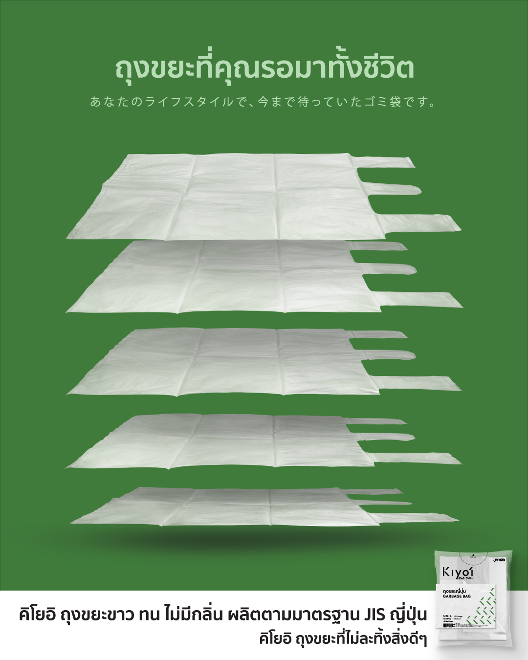 "คิโยอิ” (Kiyoi) แบรนด์ถุงขยะพรีเมียมมาตรฐานญี่ปุ่น พร้อมเป็นส่วนหนึ่งในการปลูกฝังให้คนไทยหันมาใช้ ถุงขยะสีขาวขุ่นที่สามารถมองเห็นข้างในได้ ซึ่งถือเป็นจุดเริ่มต้นที่ดีที่นอกจากจะช่วยในเรื่องของการจัดการขยะในครัวเรือนแล้ว ยังเป็นการให้ความสำคัญกับความปลอดภัยของการจัดการขยะประเภทต่างๆ อย่างมีประสิทธิภาพ ทั้งนี้การที่สามารถมองเห็นขยะภายในถุง เป็นการช่วยให้เจ้าหน้าที่เก็บขยะไม่ต้องฉีกถุงเพื่อตรวจดูขยะสิ่งของข้างใน รวมถึงป้องกันอันตรายจากขยะมีคม เช่น เศษแก้ว ใบมีด ฯลฯ โดยปัจจุบันถุงขยะสีขาวขุ่นนี้กำลังเป็นที่นิยมอย่างมากในทวีปเอเชีย โดยเฉพาะอย่างยิ่งในประเทศญี่ปุ่น เพราะนอกจากคุณสมบัติของการจัดการขยะได้ดีแล้ว ยังถือเป็นถุงขยะสีขาวขุ่นที่สะอาดปลอดภัย เนื่องจากไม่ผ่านกระบวนการผลิตซ้ำ โดยปราศจากสารเคมีที่ใช้ในการผลิตอันอาจก่อให้เกิดมะเร็งหรือสารตกค้างที่เป็นอันตรายต่อมนุษย์ สัตว์ และสิ่งแวดล้อม