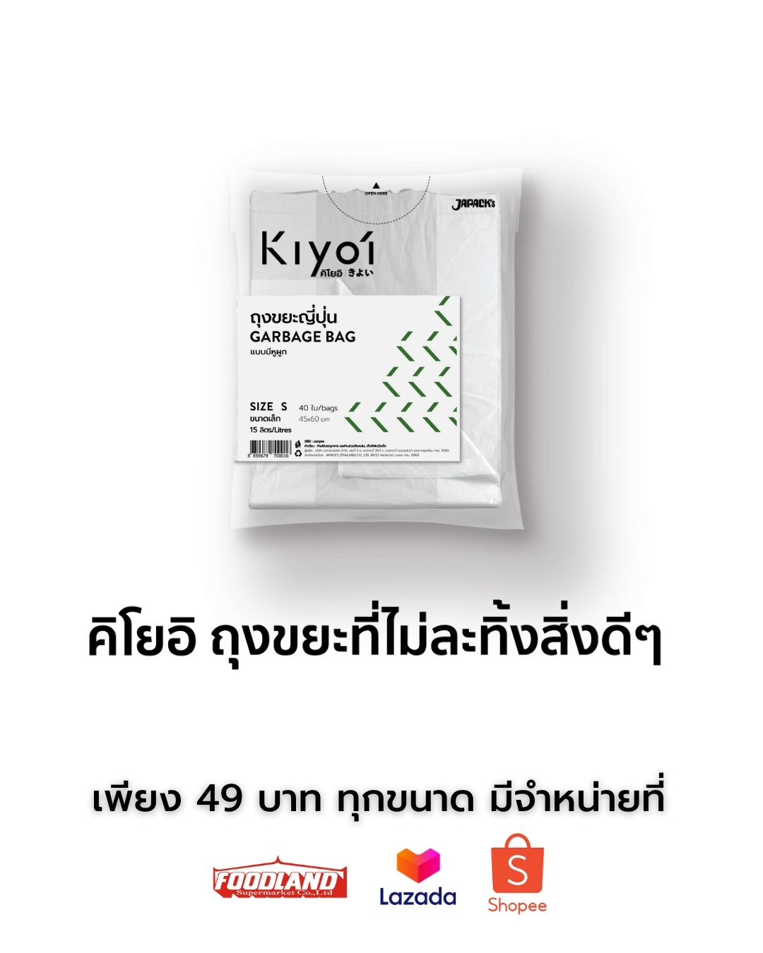 มาร่วมเป็นส่วนหนึ่งของการเปลี่ยนแปลงการจัดการขยะในยุคนี้ กับ “คิโยอิ” (Kiyoi) ถุงขยะสีขาวขุ่นคุณภาพพรีเมียมได้แล้ววันนี้ “ถุงขยะที่ไม่ละทิ้งสิ่งดีๆ” ประกอบด้วย 3 ขนาด: ไซส์ S (15 ลิตร 40 ชิ้น) ไซส์ M (30 ลิตร 20 ชิ้น) ไซส์ L (45 ลิตร บรรจุ 15 ชิ้น) ทุกไซส์ราคาเดียวเพียง 49 บาทเท่านั้น! สามารถหาซื้อได้ที่ Foodland ทุกสาขาทั่วไทย หรือซื้อผ่านช่องทางออนไลน์ อาทิ Lazada Mall และ Shopee Mall และติดตามความเคลื่อนไหวและข้อมูลข่าวสารเพิ่มเติมได้ทางเวปไซต์ www.kiyoithailand.com หรือ Facebook KIYOI คิโยอิ และ Instagram @kiyoithailand