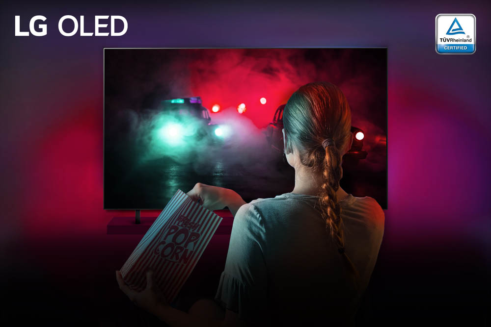 สายดูหนังซีรีส์แบบข้ามคืนต้องถูกใจเทคโนโลยีการกำเนิดแสงจากเม็ดพิกเซลของ OLED ที่สามารถเปล่งแสงเองได้ จึงสามารถให้สีดำสนิทและแสดงค่าคอนทราสต์ได้ดีที่สุด ทำให้รายละเอียดการแสดงผลบนหน้าจอทีวียังคงความคมชัดและสมจริงแม้ในฉากกลางคืนที่มืดสนิท ทีวีLG OLED ยังได้รับการยอมรับในด้านการถนอมสายตาด้วยจุดเด่น Eye Comfort Display โดยผ่านการรับรองมาตรฐานจากTÜV Rheinlandจากประเทศเยอรมนี ที่รับรองว่าจอ OLED ให้แสงสีฟ้าซึ่งเป็นแสงที่อันตรายต่อดวงตาเพียงแค่ 34% ซึ่งมาตรฐานกำหนดไว้ห้ามเกิน 50% จึงมั่นใจได้ว่าสามารถรับชมคอนเทนต์ต่าง ๆ บนหน้าจอ OLED ได้อย่างสบายตาตลอดวัน