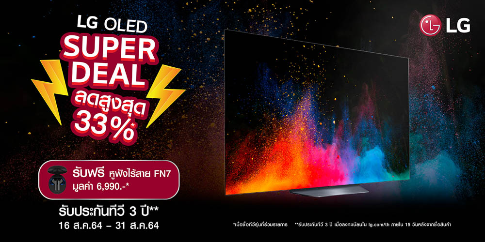 LG OLED TV มี 5 ซีรีส์ให้เลือกสรร ได้แก่ ซีรีส์Z1, G1, C1, B1 และ A1 ขนาดตั้งแต่ 48” - 88” ราคาเริ่มต้น 45,990 –1,999,990 บาท พิเศษตั้งแต่วันนี้ถึง 31 ส.ค.64 แอลจีจัดโปรโมชั่น LG OLED Super Dealให้คุณรับส่วนลดสูงสุด 33% รับฟรีหูฟังไร้สาย LG FN7 มูลค่า 6,990 บาท เมื่อซื้อทีวีรุ่นที่ร่วมรายการ พร้อมรับประกันทีวีนาน 3 ปี ณ ตัวแทนจำหน่ายทั่วประเทศ สอบถามรายละเอียดเพิ่มเติมได้ที่ศูนย์ข้อมูลแอลจี 0-2878-5757หรือhttps://www.lg.com/th/oled-tvและสามารถดูข้อมูลเพิ่มเติมได้ที่