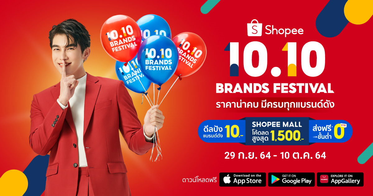 วอร์มมือให้พร้อม แล้วเตรียมไปช้อปกันกับมหกรรม Shopee 10.10 Brands Festival ราคาน่าคบ มีครบทุกแบรนด์ดัง ตั้งแต่วันที่ 29 กันยายน - 10 ตุลาคม 2564 เท่านั้น โดยนักช้อปจะได้พบกับโปรเด็ดราคาน่าคบอย่าง โค้ดส่วนลดสำหรับสินค้าบน Shopee Mall สูงสุด 1,500 บาท, ดีลปัง แบรนด์ดัง 10 บาท, โปรโมชั่นส่งฟรีขั้นต่ำ 0 บาท จากกองทัพสินค้าแท้จากแบรนด์ดังบน Shopee Mall อาทิ L’oreal Paris, Unilever, Lotus’s, B'me by Wacoal, Samsung, Index Living Mall, P&G และอีกคับคั่ง และพิเศษสำหรับนักช้อปที่ชำระเงินผ่าน ShopeePay พบกับความคุ้มค่าอย่างโค้ดส่วนลดจ่ายบิลสูงสุดถึง 100 บาท ฟรีค่าธรรมเนียม และโค้ดส่งฟรีขั้นต่ำ 0 บาท ไม่เพียงเท่านี้ นักช้อปยังเตรียมพบกับความบันเทิงเต็มพิกัดที่มาพร้อมรางวัลสุดยิ่งใหญ่จากเกมบน Shopee Prizes หลากหลายสาระคอนเท้นต์สุดปังไปกับ Shopee Live และรายการเฉพาะกิจใน Shopee 10.10 Mega Game Show ฟังร้องได้ล้าน ที่ขนทัพดารา ศิลปินมามอบความสุขส่งตรงถึงบ้านคุณ ผ่านทางช่อง CH7 และ Shopee Live ในเวลา 18.00 - 20.00 น.
