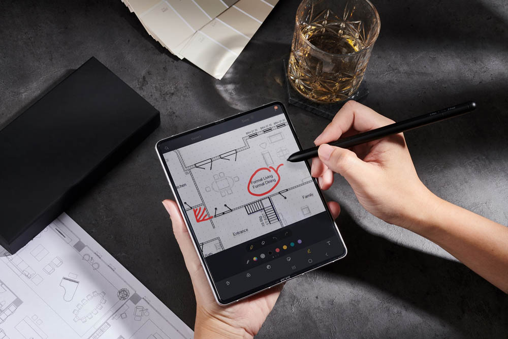 S Pen ถือเป็นหนึ่งในเครื่องมือชิ้นสำคัญของคนทำงาน ด้วยประสิทธิภาพของการเขียนที่แม่นยำ ความอเนกประสงค์ด้านการใช้งาน รวมถึงขนาดที่ง่ายต่อการพกพา ซึ่งเมื่อนำมารวมกับความโดดเด่นของสมาร์ทโฟนหน้าจอพับได้ ที่มาพร้อมหน้าจอขนาดใหญ่ 7.6 นิ้ว ทำให้สามารถเพิ่มขอบเขตการใช้งาน S Pen ให้ทรงพลังยิ่งขึ้น