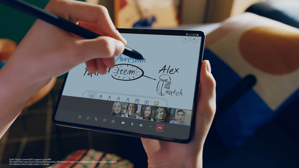ซัมซุงยังได้ร่วมมือกับไมโครซอฟต์ เพื่อให้การประชุมหรือเบรนสตรอมงานร่วมกันแม้อยู่ต่างสถานที่เป็นไปได้ง่ายขึ้น ด้วยการออกแบบไวท์บอร์ดเสมือนจริง (Virtual Whiteboard) ที่ทำงานบนสมาร์ทโฟนหน้าจอพับได้และ S Pen เพื่อให้แต่ละคนได้เขียนเพื่อระดมความคิด แบ่งปันไอเดียต่างๆ ร่วมกัน