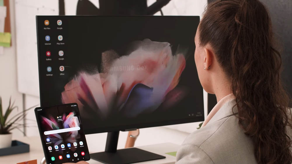 อีกหนึ่งเคล็ดลับเพื่อเพิ่มประสิทธิภาพให้กับคนทำงาน คือฟีเจอร์ Samsung DeX ที่จะทำให้ Galaxy Z Fold3 5G กลายเป็นคอมพิวเตอร์เดสก์ท็อป ผ่านการเชื่อมต่อแบบไร้สายกับ Samsung Smart Display หรือ Smart TV ซึ่งการทำงานของ Samsung DeX นั้น ไม่เหมือนกับการสะท้อนหน้าจอทั่วไป (Screen Mirroring) แต่เป็นการมอบประสบการณ์เสมือนการใช้งานคอมพิวเตอร์จริง โดยผู้ใช้สามารถเปิดใช้งานหลายแอปพลิเคชันได้พร้อมกันบนหน้าต่างที่ปรับขนาดได้ตามต้องการ หรือเรียกใช้งาน Microsoft Office ก็เป็นไปอย่างลื่นไหล นอกจากนี้ คุณยังสามารถเปลี่ยน Galaxy Z Fold3 5G ให้เป็น Trackpad แทนเมาส์ หรือ virtual keyboard เพื่อใช้ทำงานร่วมกันได้ หรือจะเปลี่ยนเป็นเชื่อมต่อบลูทูธเพื่อใช้งานเมาส์หรือคีย์บอร์ดจริงก็ทำได้เช่นกัน