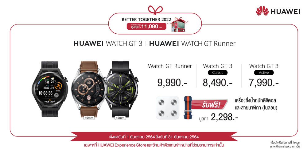หนุ่มๆ หรือเพื่อนสาวๆ คนไหนกำลังเล็งสินค้าช่วงคริสต์มาสนี้ HUAWEI WATCH GT 3 ขนาด 42 มม. ราคาเริ่มต้น 7,990 บาท ก็เป็นตัวเลือกที่ทั้งสวยและใส่ใจสุขภาพที่ไม่ควรพลาด สามารถไปสัมผัสความสวยเก๋ และซื้อเป็นของขวัญสิ้นปีได้ที่หน้าร้าน HUAWEI Experience Store และร้านค้าตัวแทนจำหน่ายที่ร่วมรายการ รวมถึงช่องทางออนไลน์ทั้งเว็บไซต์ HUAWEI Store และร้านค้าออนไลน์อย่างเป็นทางการของหัวเว่ยใน Shopee, Lazada และ JD Central โดยสามารถศึกษาข้อมูลเพิ่มเติมเกี่ยวกับผลิตภัณฑ์ที่นี่ และ โปรโมชั่นได้ที่นี่