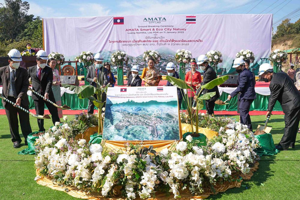เมื่อเร็วๆ นี้ บริษัท อมตะ คอร์ปอเรชัน จำกัด (มหาชน) หรือ AMATA จัดพิธีวางศิลาฤกษ์เริ่มพัฒนาโครงการอมตะ สมาร์ท แอนด์ อีโค ซิตี้ (AMATA SMART & ECO CITY) หรือเมืองทันสมัยเป็นมิตรกับสิ่งแวดล้อม ที่นาเตย แขวงหลวงน้ำทา ได้รับเกียรติจากท่านคำไหล ศรีประเสริฐ เจ้าแขวงหลวงน้ำทามาเป็นประธานในพิธี โดยมีและคณะผู้บริหารระดับสูงในแขวงหลวงน้ำทาและอุดมชัย สปป. ลาว ร่วมในพิธีดังกล่าวด้วย
